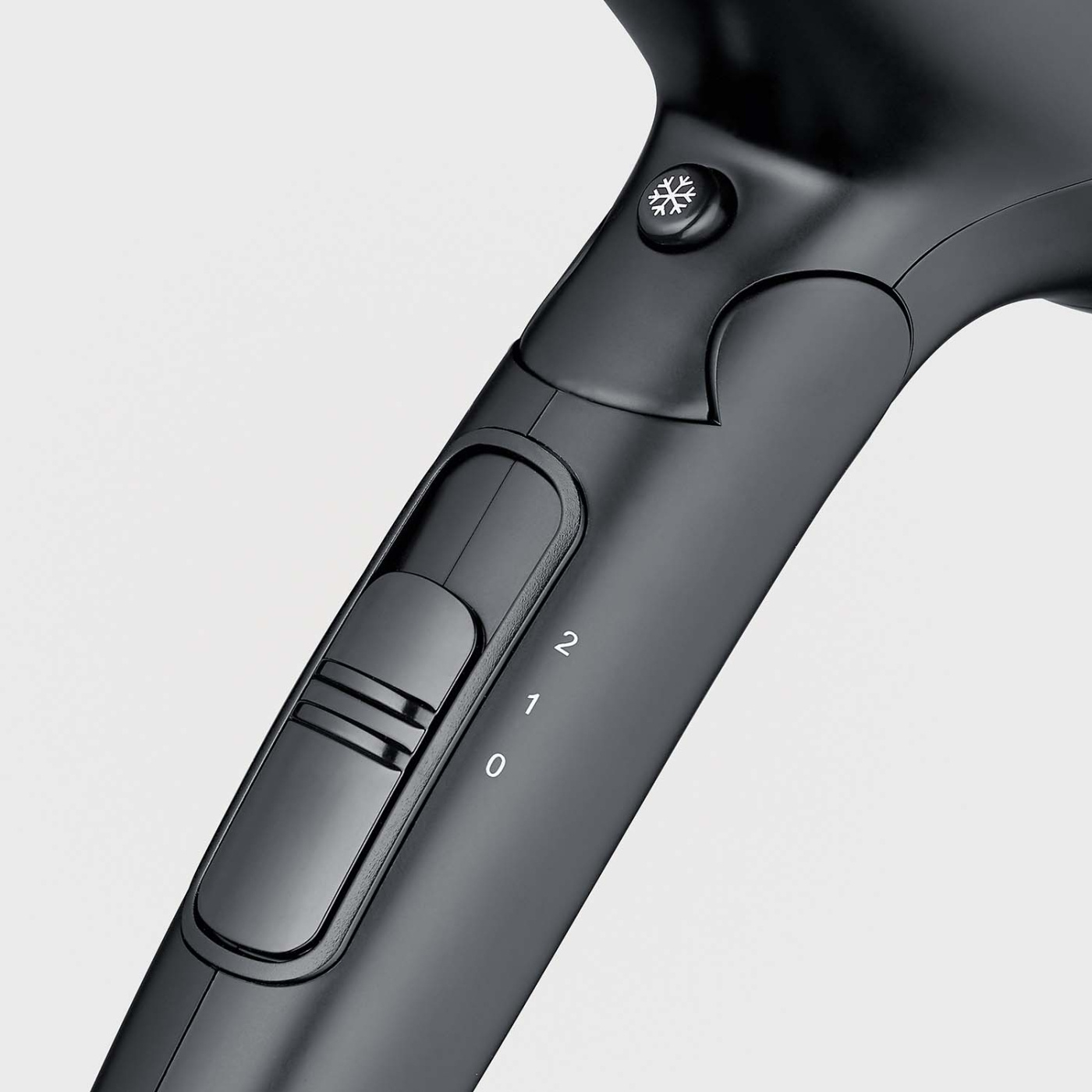 Med den flexibla dubbelspänningstekniken på 110/220-240 V är du alltid perfekt utrustad, oavsett var du befinner dig. Oavsett om du är hemma eller på resande fot kan hårtorken justeras manuellt för att passa både strömkällor. Detta säkerställer att du kan styla ditt hår med precision och komfort, oavsett plats.