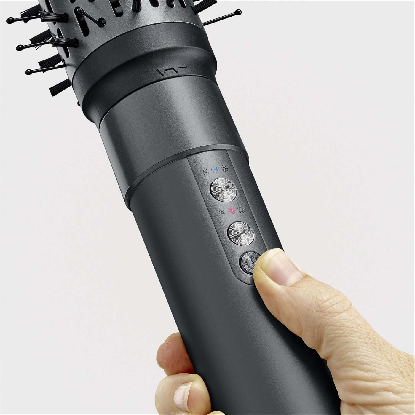 Borsttillsatsen slätar ut håret och ger en silkeslen finish, idealisk för en naturlig och smidig styling som håller hela dagen.