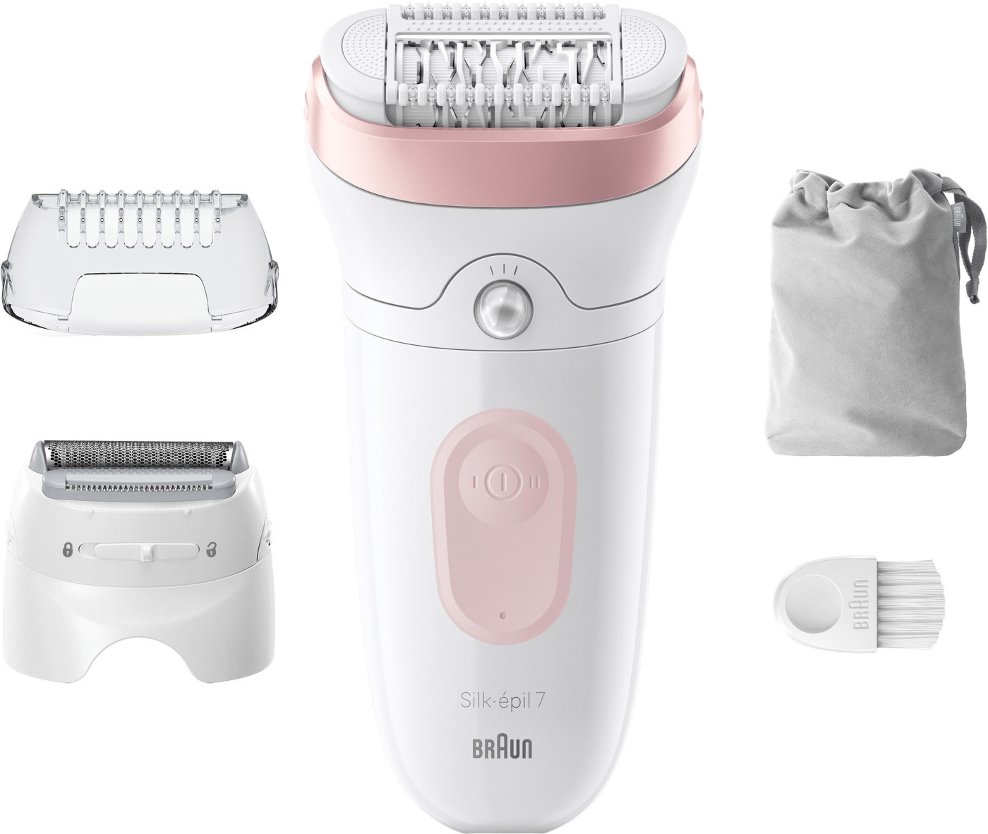 Braun Silk-épil 7 guarantees smooth skin for up to a month, anytime and effectively. Thanks to the wide head, the Wet & Dry epilator covers a large area and removes more hair with every stroke (compared to Braun Silk-épil 5). The MicroGrip tweezer technology of this cordless Braun epilator removes hairs up to 0.5 mm long. Enjoy first-class smoothness as well as comfort of use with a pain-reducing massage roller. No more waiting for inconvenient hair regrowth like other hair removal products (e.g. wax). A very convenient epilator that requires no cleaning or visits to the beauty salon. Tip: the treatment is less painful when epilated in a bath or shower under warm water. Designed to last: our epilators are made in Germany.