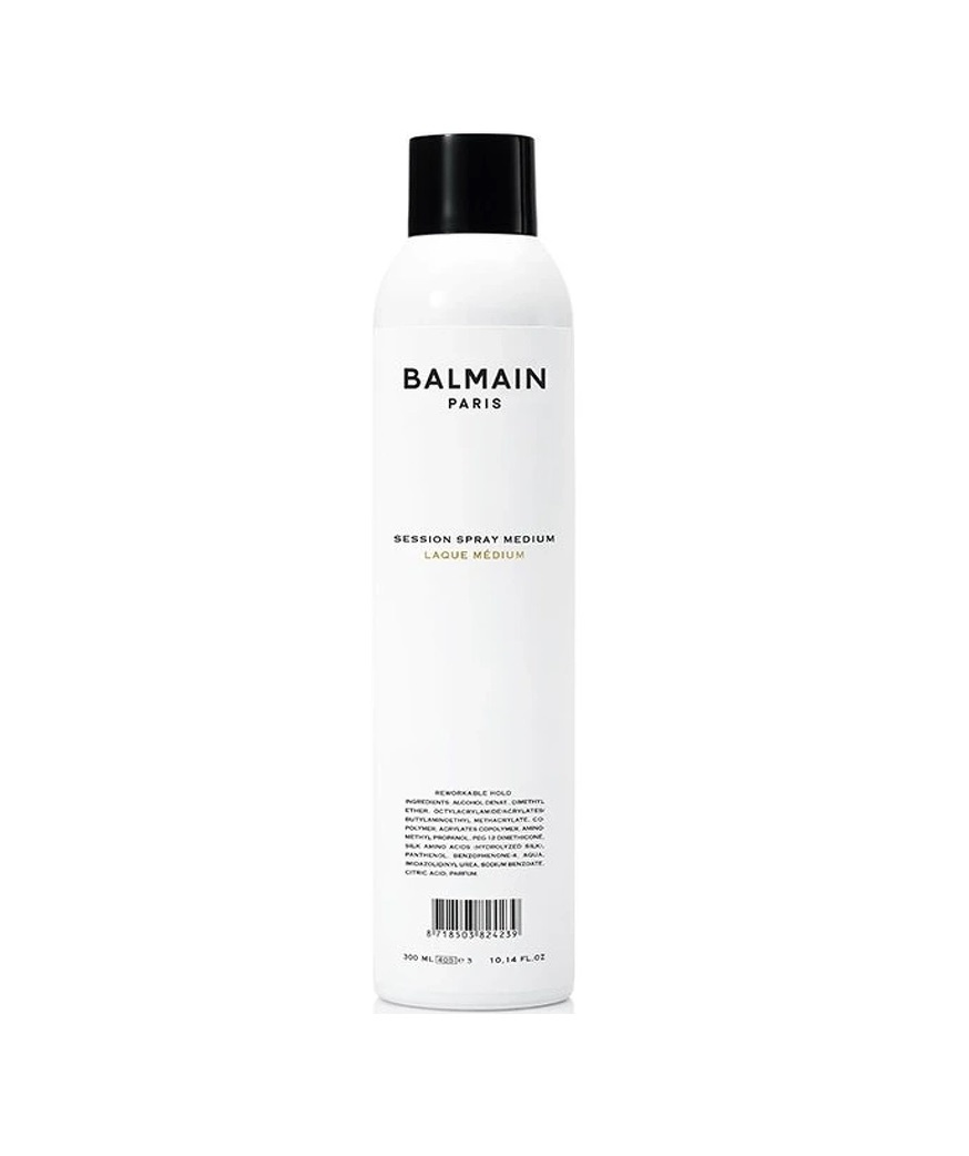 Medium hold hairspray. Ideal for reshaping and styling the hair. Session Spray Medium is a post-treatment hair spray that maintains elasticity and movement in the hair, while maintaining long-lasting control. Ideal for medium hold hairstyles and easy to brush out. The ingredients Silk protein and Argan Oil stimulate optimal moisture retention in the hair cell, repair and protect damaged, dry and weak hair against extreme conditions. The Care line has a wonderful signature scent, a unique blend of notes that steals you away to the perfect summer day. Each time the products are used, they enrich the hair with nourishing ingredients and give a whiff of Balmain's signature scent.