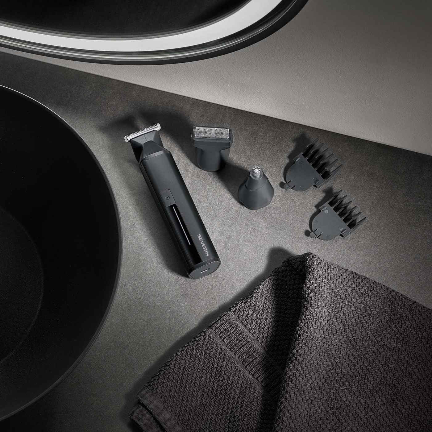 Upptäck den innovativa 6-i-1 grooming-apparaten, en mångsidig enhet designad för att hantera alla dina grooming-behov. Oavsett om du vill styla ditt hår, trimma skägget, eller ta hand om kroppshår och näshår, erbjuder denna apparat maximal flexibilitet för varje grooming-rutin.