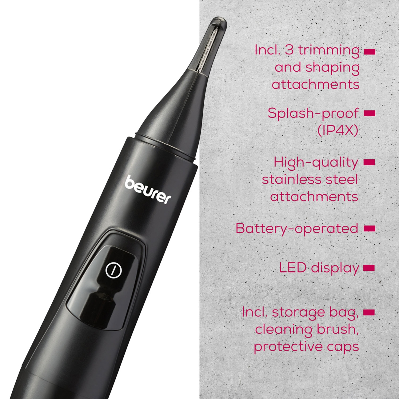 Beurer MN2X är mer än bara en trimmer. Oavsett om du tämjer ojämna ögonbryn, tar itu med irriterande näshår eller bara vill upprätthålla en polerad look, löser MN2X allt.