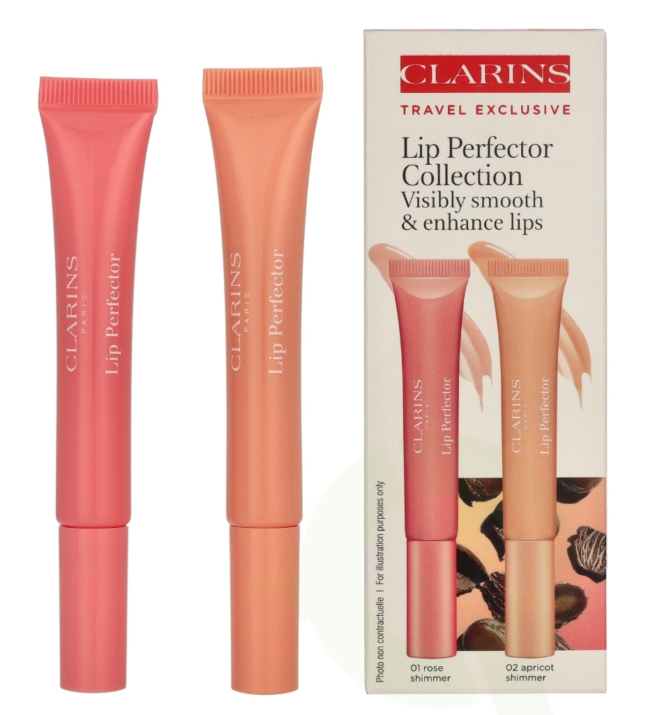 Clarins Natural Lip Perfector Set 24 ml #01 Rose Shimmer 12ml/ #02 Apricot Shimmer 12ml