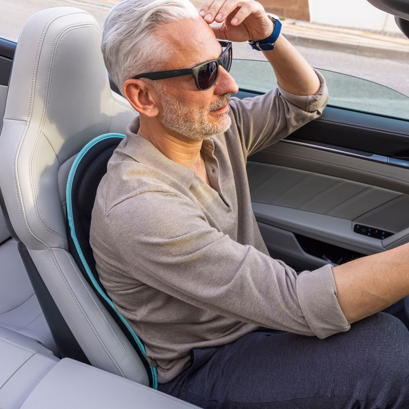 The Cosy Mesh Go is a seated massage mat designed to provide a soothing vibrating massage for the neck, back, buttocks, and thighs. It features three distinct vibration zones, allowing for even distribution of the massage effect. With two operating modes and two intensity levels, users can customize their experience to suit their individual preferences. The heating function enhances muscle relaxation and adds comfort during colder days.