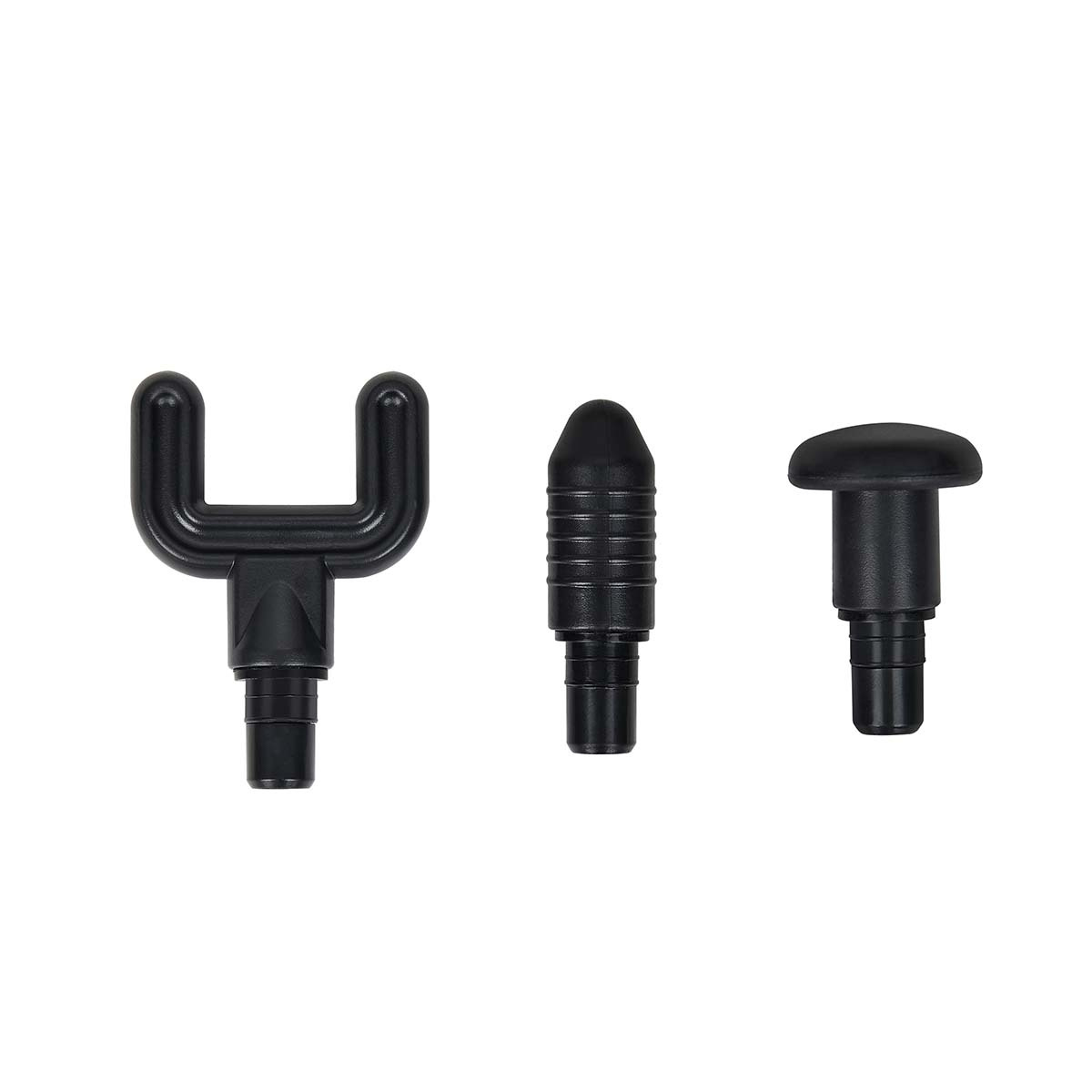 massage helps promote well-being and this massage gun is no exception. The massage gun is equipped with 32 massage intensity levels and a control panel with an easy-to-read LED display. The massage gun is very user-friendly and you can easily and quickly adjust the speed level up and down. You mount the desired massage head in the socket, turn on the on/off button and you can begin your massage on the desired area. By default, the device always starts at speed level 10 and each massage cycle will automatically stop after 15 minutes, if it is not stopped before. 4 removable massage heads are included, so you can easily replace them along the way if several places need to be massaged: