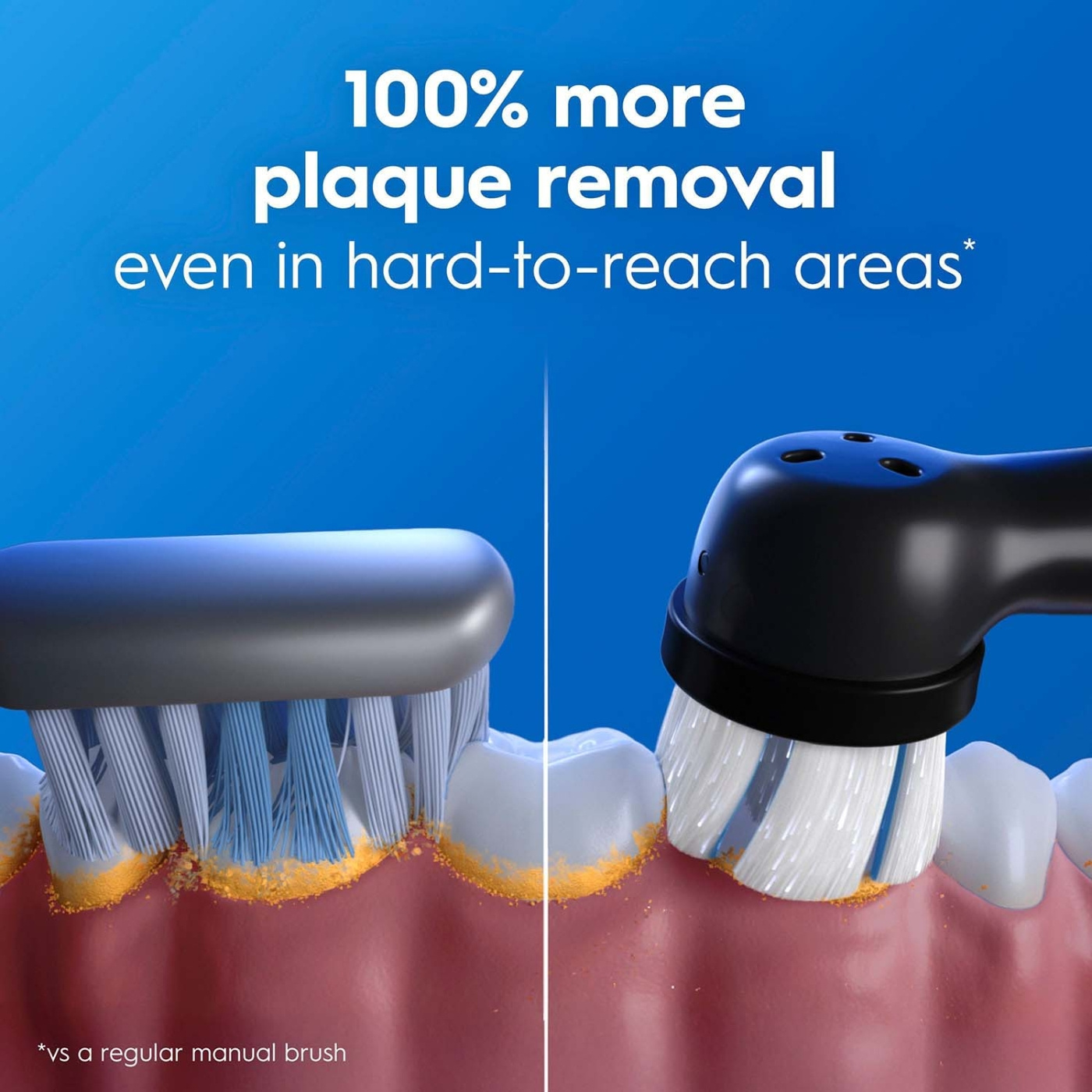 - Rent och skonsamt: 100 % mer plackborttagning även i svåråtkomliga områden jämfört med en vanlig manuell tandborste