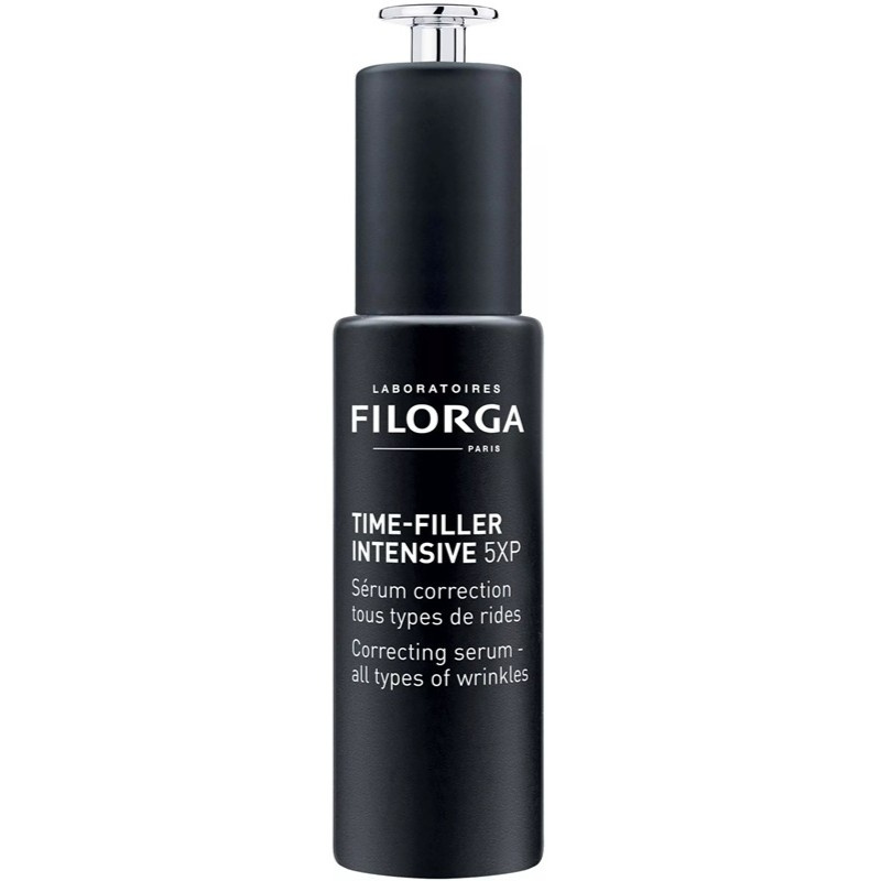 Filorga Time-Filler Intensive 5XP Serum är ett anti-aging-serum som arbetar för att släta ut fem typer av rynkor och fina linjer. Formulan innehåller FILORGAs 5XP-komplex som är inspirerat av estetiska behandlingar, och dess avslappnande effekt främjar omedelbar och långvarig korrigering av uttryckslinjer, djupa rynkor, ytliga rynkor, torrhetslinjer och halsrynkor. Den silkeslena texturen glider lätt över huden och ger en uppfriskande känsla. Kliniska studier har påvisat imponerande resultat: 97% rapporterade en omedelbart utjämnande effekt och att huden såg slätare ut efter första appliceringen. Efter 7 dagars användning upplevde 94% att ansiktsdragen såg mjukare ut, och efter 28 dagar upplevde 82% att deras rynkor var mindre framträdande.*• Slätar ut fem typer av rynkor och fina linjer• Ger både omedelbara och långvariga resultat• Passar alla hudtyperAktiva ingredienser i Time-Filler Intensive 5XP:5XP-komplexet innehåller en neuropeptid (4%) som efterliknar botulinumtoxinets effekter för att blockera muskelsammandragningar – för att leverera en kraftfull anti-aging-effekt. Hyaluronsyra återfuktar huden, medan en blandning av omedelbart utslätande ingredienser hjälper till att förbättra hudens struktur och utseende.*Klinisk studie – 30 personer – efter 1, 7 och 28 dagar, när Time-Filler Intensive 5XP har applicerats på ansikte och hals två gånger dagligen.30ml