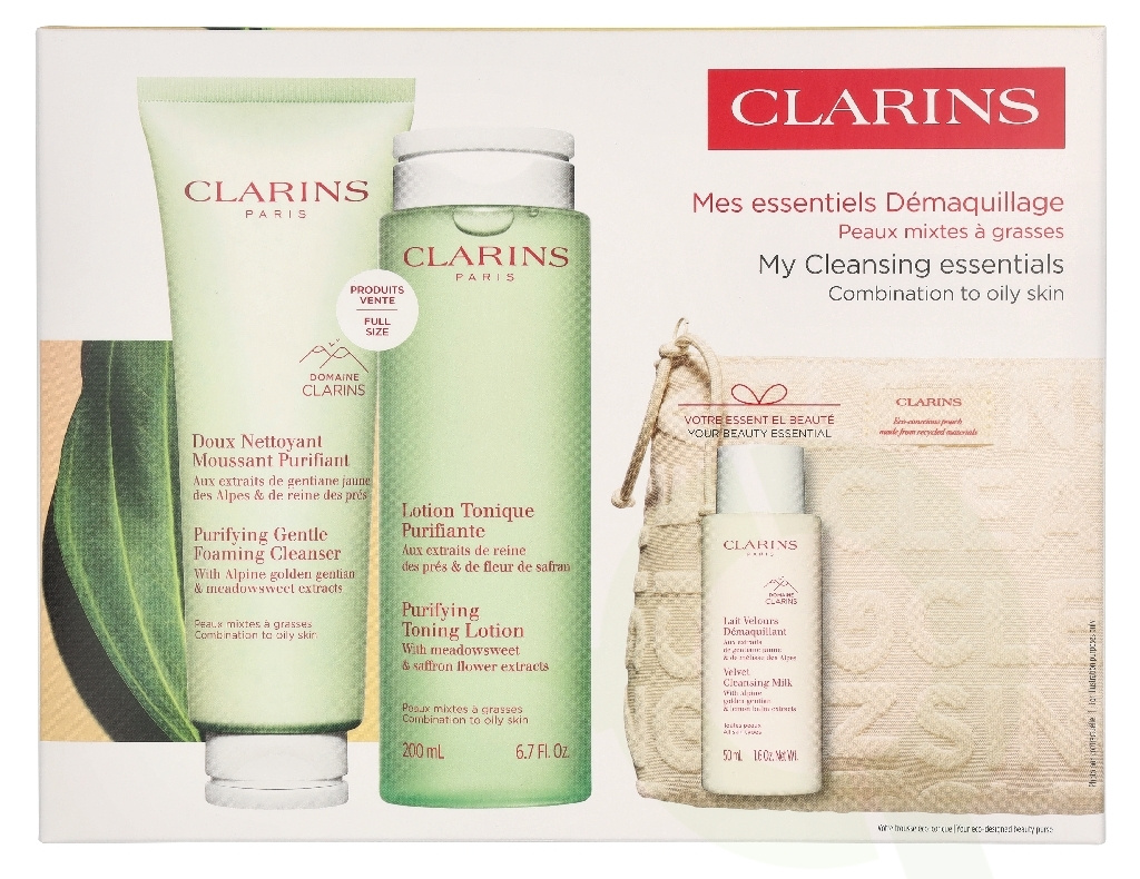 Clarins Cleansing Combination Set 375 ml Foaming Cleanser 125ml/Lotion 200ml/Milk 50ml/Purse