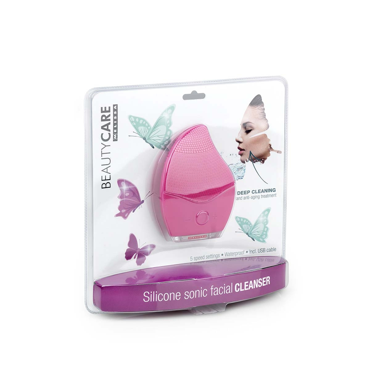 Melissa Silicone Sonic Facial Cleanser är en multifunktionell hudvårdsenhet som är utformad för djup ansiktsrengöring och anti-agingvård. Med hjälp av avancerad sonisk vibrationsteknik avlägsnar den effektivt orenheter samtidigt som den stöder hudens fasthet och elasticitet. Enheten kombinerar rengöring och ansiktsmassage i ett kompakt, lättanvänt verktyg som passar för dagliga hudvårdsrutiner.