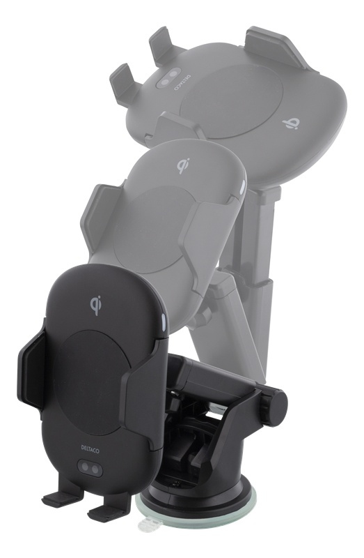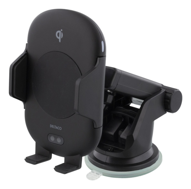 DELTACO wireless car charger with IR sensor, 10W, automatic closing/opening, Qi-certified, suctioncup