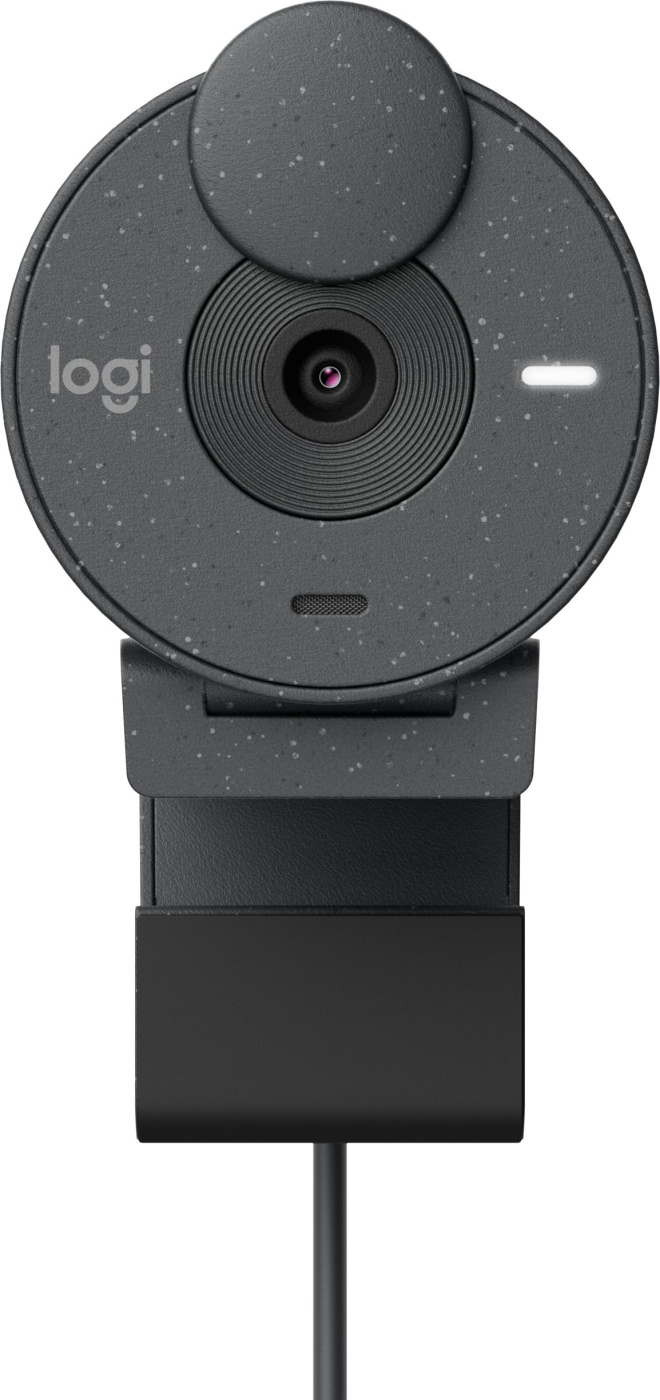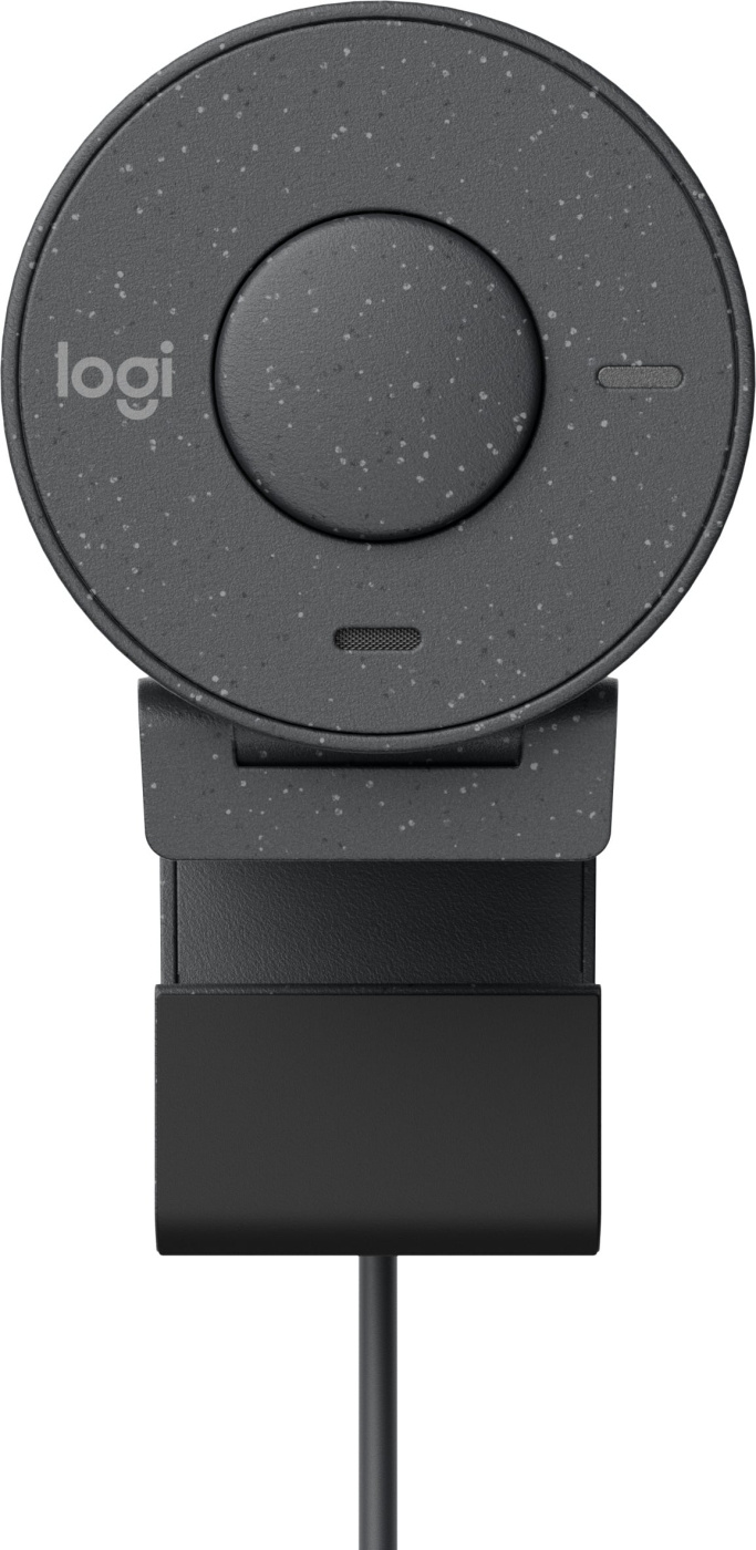 Welcome to better meetings with the Brio 305. Look your best thanks to high resolution and automatic lighting correction. The easy-to-use privacy shutter opens and closes with a quick twist. The Brio 305 works with leading meeting platforms, and its stylish speckled finish is made from 48% recycled plastic. *