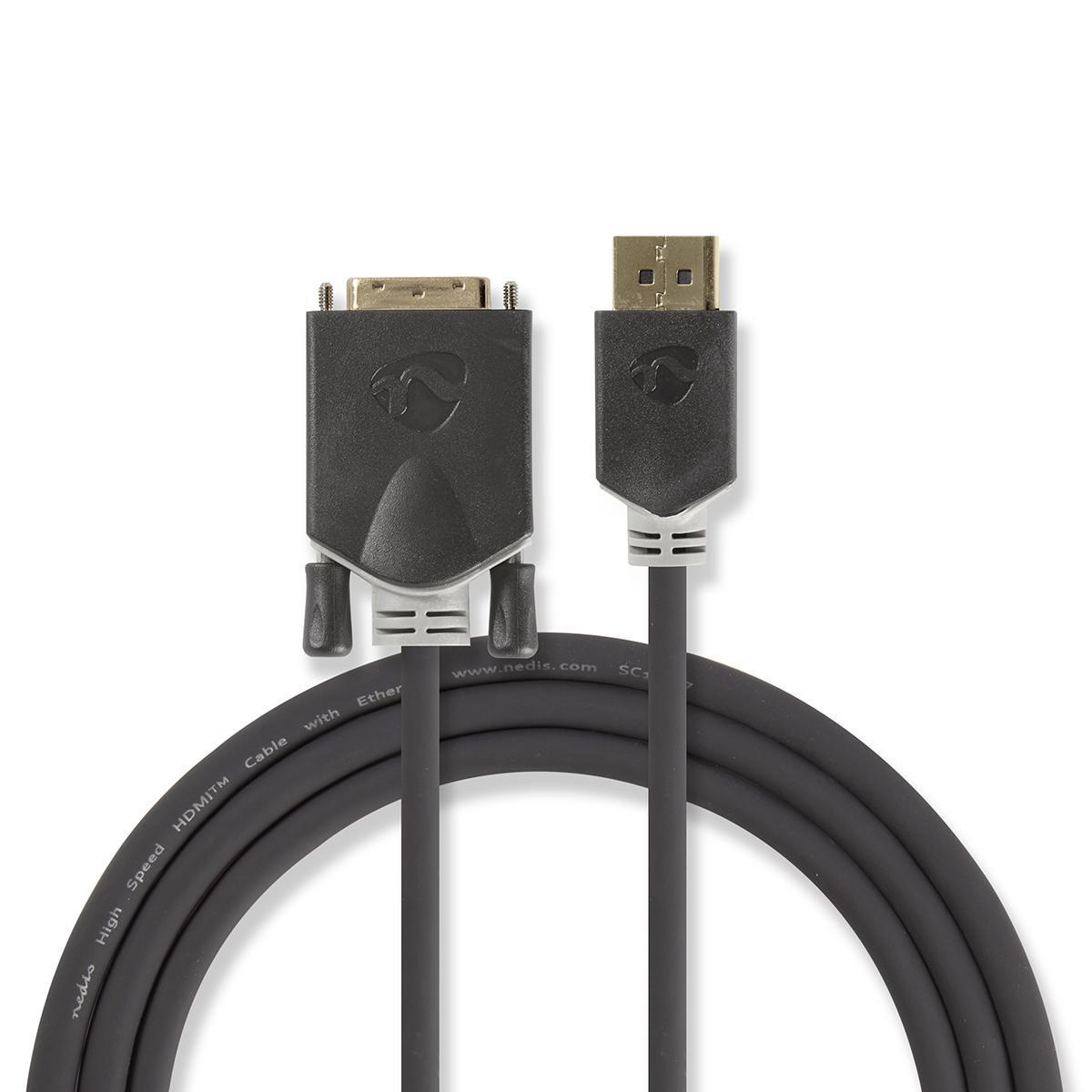 Nedis DisplayPort Cable | DisplayPort Male | DVI-D 24+1-Pin Male | 1080p | Gold Plated | 2.00 m | Round | PVC | Anthracite | Polybag