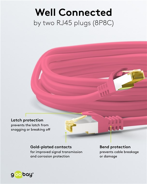 - High-quality copper conductor (CU) and 50µ gold-plated contacts guarantee an excellent, powerful network connection