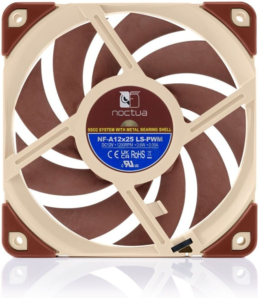 The 4-pin LS-PWM version is a low-speed, PWM-compatible version that is ideal for semi-passive or ultra-quiet setups. In addition to exceptional smoothness, Noctua's reference-class SSO2 bearing, a generous accessory package, and a 6-year manufacturer's warranty, the NF-A12x25 is a top-quality product through and through. Its superior efficiency, top-tier construction, and groundbreaking materials make it the top choice even for the most demanding situations.