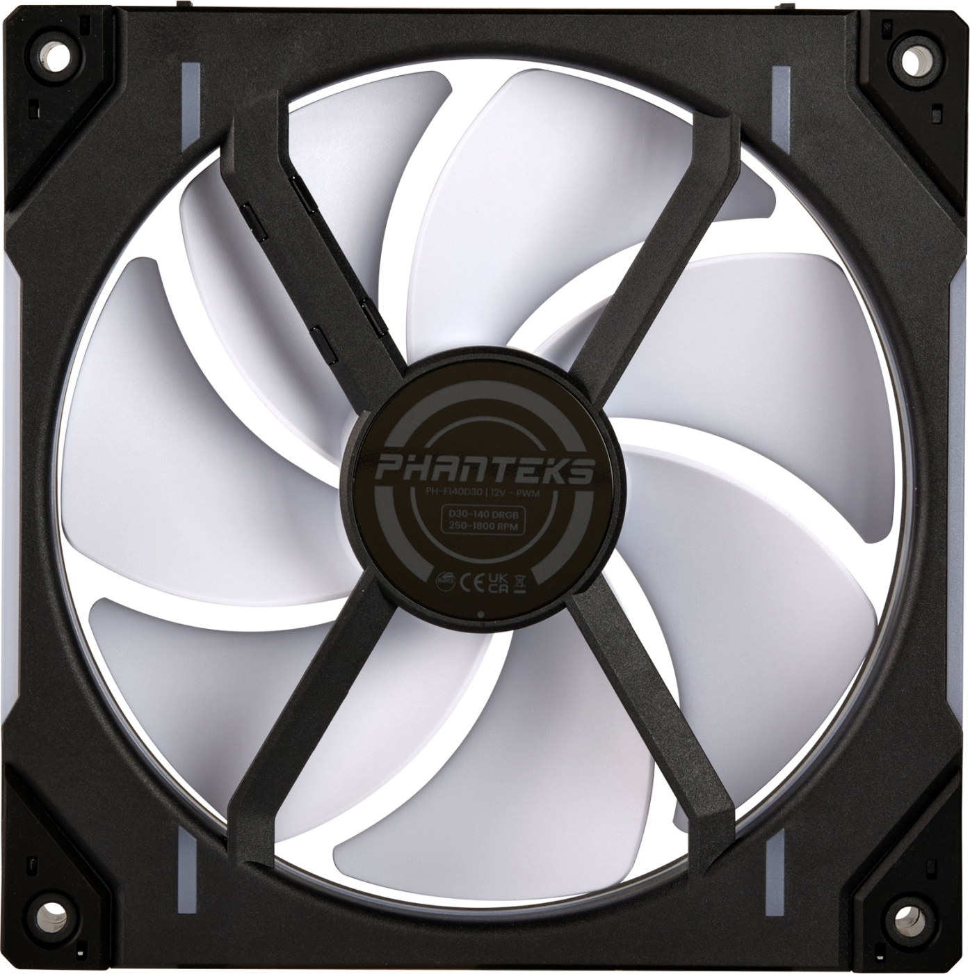 Phanteks The D30-140 features integrated D-RGB lighting across the entire frame and blades on all sides. Multiple D30-140 fans can be daisy-chained together using bridge connectors and screw-on covers to reduce cable clutter, helping to keep the case clean.