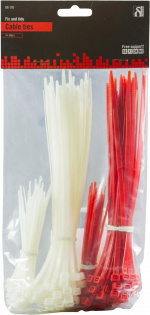 En förpackning innehåller 50st av varje sort: Vit: 2,5x100mm och 4,6x200mm Röd: 2,5x100mm och 4,6x200mm