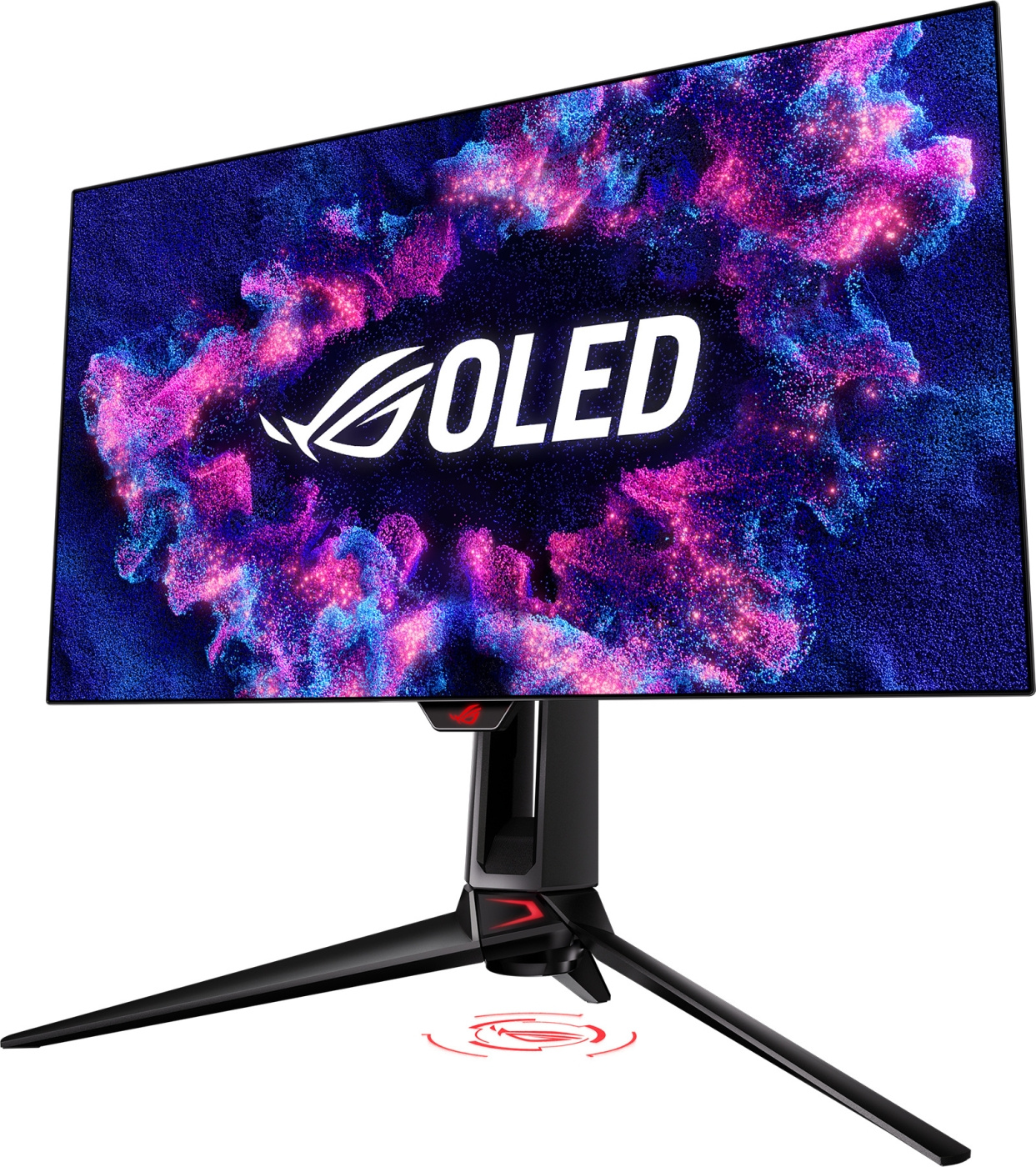 The 27-inch ROG Swift OLED PG27AQDP gaming monitor features a 1440p WOLED panel with a 480 Hz refresh rate, OLED Anti-Flicker technology, and a 0.03 ms response time (GTG) for immersive, fast-paced gaming. A large custom cooling element provides exceptional cooling performance, while OLED Care features—ASUS—reduce the risk of burn-in to ensure a long lifespan for the OLED panel. The ROG-exclusive WOLED panel delivers deeper blacks and vivid colors regardless of lighting conditions. The PG27AQDP monitor features numerous connectivity options; DisplayPort 1.4, two HDMI 2.1 ports, and two USB 3.2 ports allow you to connect a wide variety of multimedia devices to the monitor. The monitor is also equipped with comprehensive ergonomic adjustments and VESA wall-mounting capability.