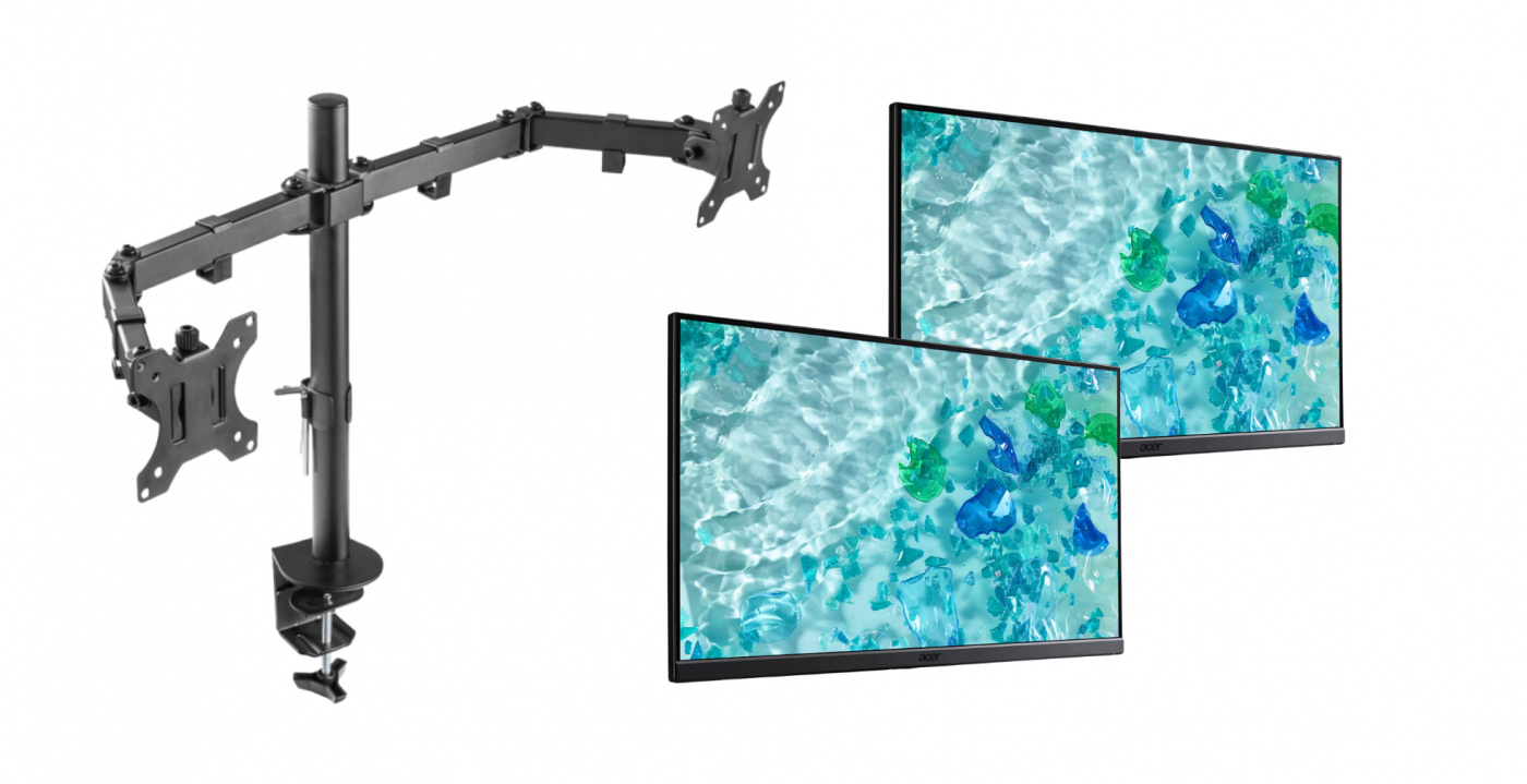 This is a complete package including a Deltaco Gaming GAM-040 monitor mount and two Acer V247Y monitors.