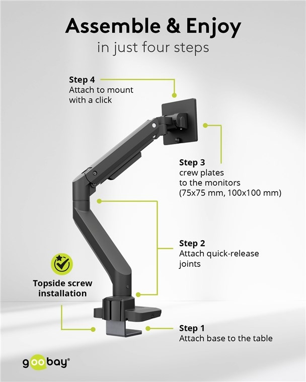 - The monitor mount is compatible with the VESA® standards 75x75 mm and 100x100 mm
