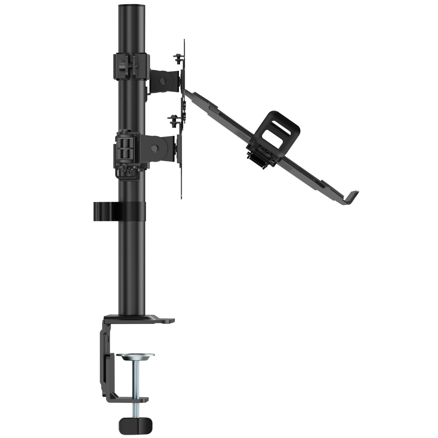 Det högkvalitativa stålfästet med klämma eller genomföring säkerställer att din bärbara dator och skärm är säkra och skyddade.