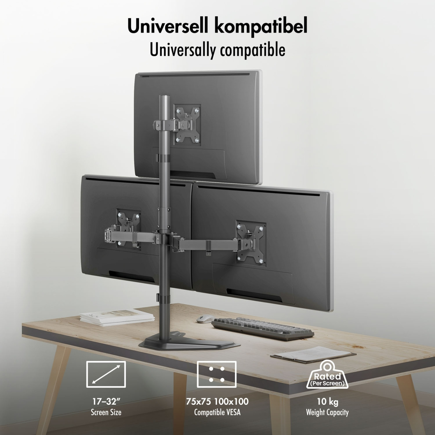 LogiLink Trippelt Monitorställ för 17–32" – Med justerbara armar