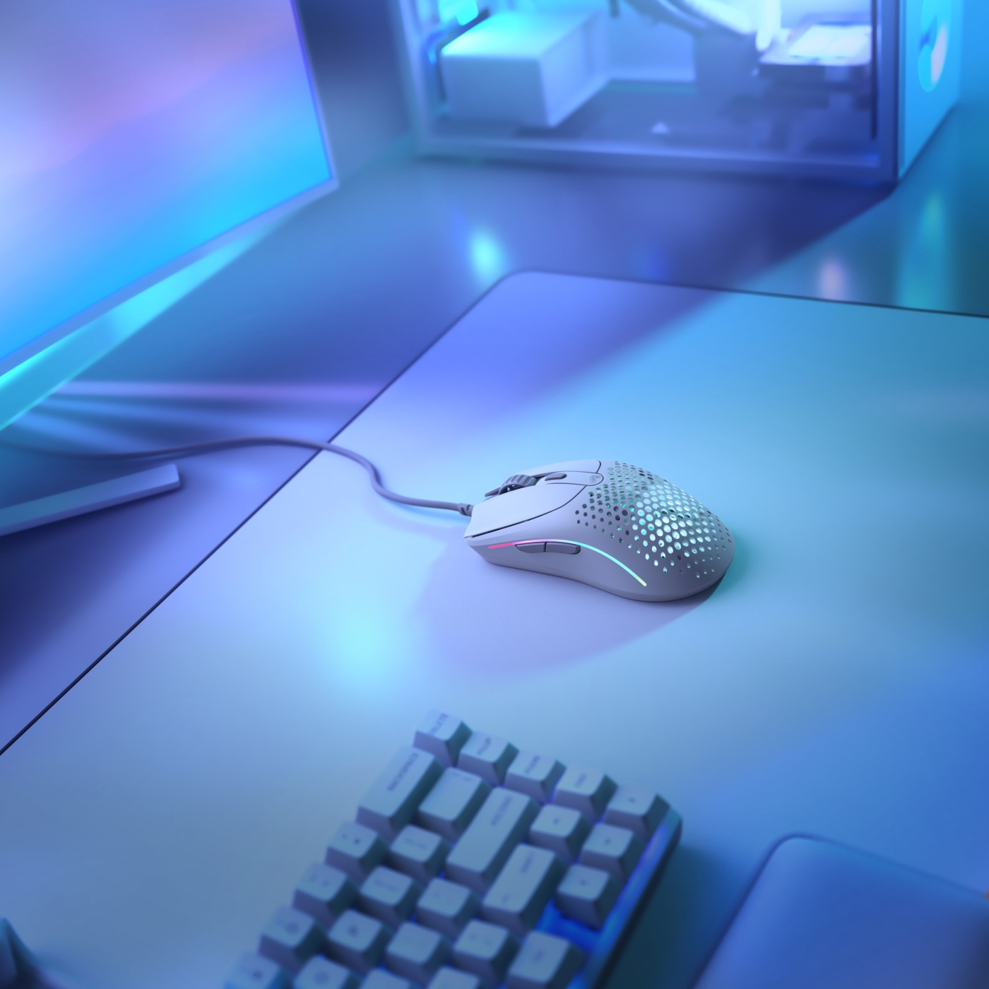 Den nya designen med delade knappar i kombination med anpassade Glorious-omkopplare förhindrar för- och efterrörelse för bästa möjliga respons. Oavsett var du trycker på huvudknapparna är känslan alltid korrekt. Musen är perfekt för händer i många storlekar och olika greppstilar. De friktionsfria G-Skates-mustassarna gjorda av 100 % PTFE-material garanterar mjukast möjliga glidning på olika ytor. Den mycket flexibla Ascended Cable är gjord av nästan viktlöst paracord-material, vilket garanterar en nästan trådlös musupplevelse.