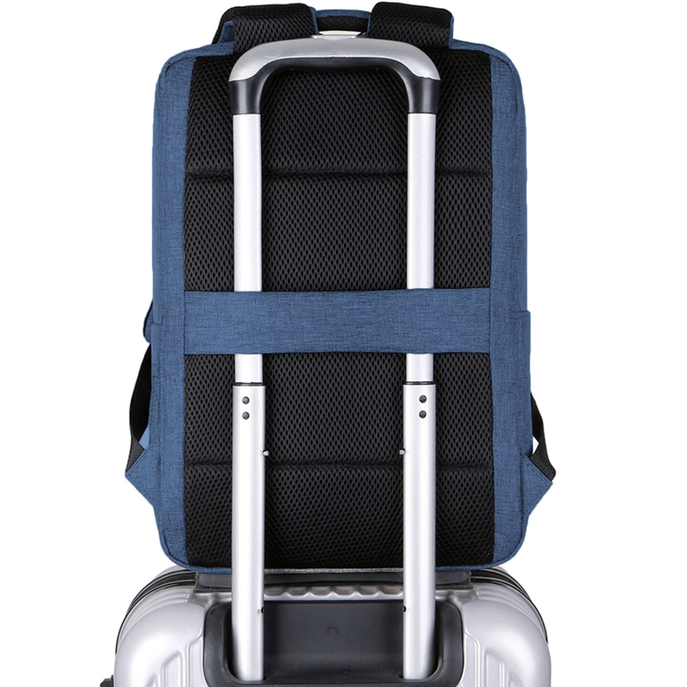 De vadderade axelremmarna ger hög komfort även vid längre användning, och den förstärkta bagageremmen på baksidan gör att ryggsäcken enkelt kan fästas på en resväska med hjul.