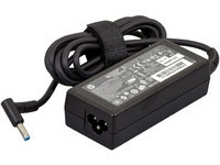 HP 65 W power adapter compatible with nearly all HP laptops featuring a 4.5 mm Smart charging port.