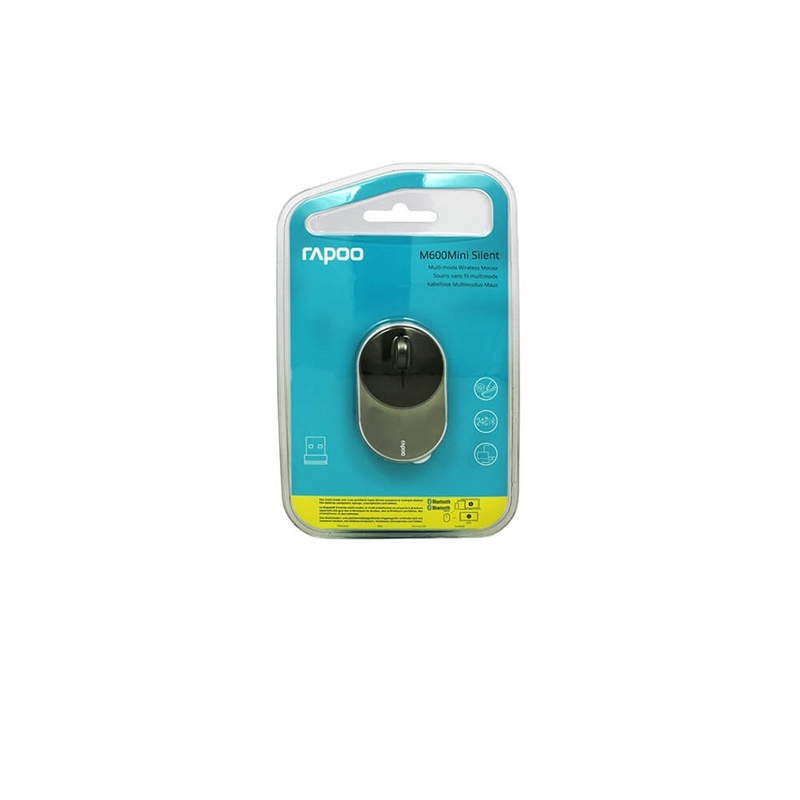 This wireless mouse makes a statement with its unique and extra compact, yet sturdy design beautifully crafted with an aluminum alloy finish. The Mini shape, perfect for travel and use on the go, is boosted by a ‘silent click’ feature, which gives freedom and a piece of mind since disturbing those around you is no longer a concern. M600 Silent transmits using Rapoo's latest and powerful multimode mode wireless – via Rapoo’s reliable 2.4 GHz wireless transmission, Bluetooth 3.0 or Bluetooth 4.0. (Smart) – allowing a simultaneous connection to up to 3 devices and changing (pairing automatically) among them.