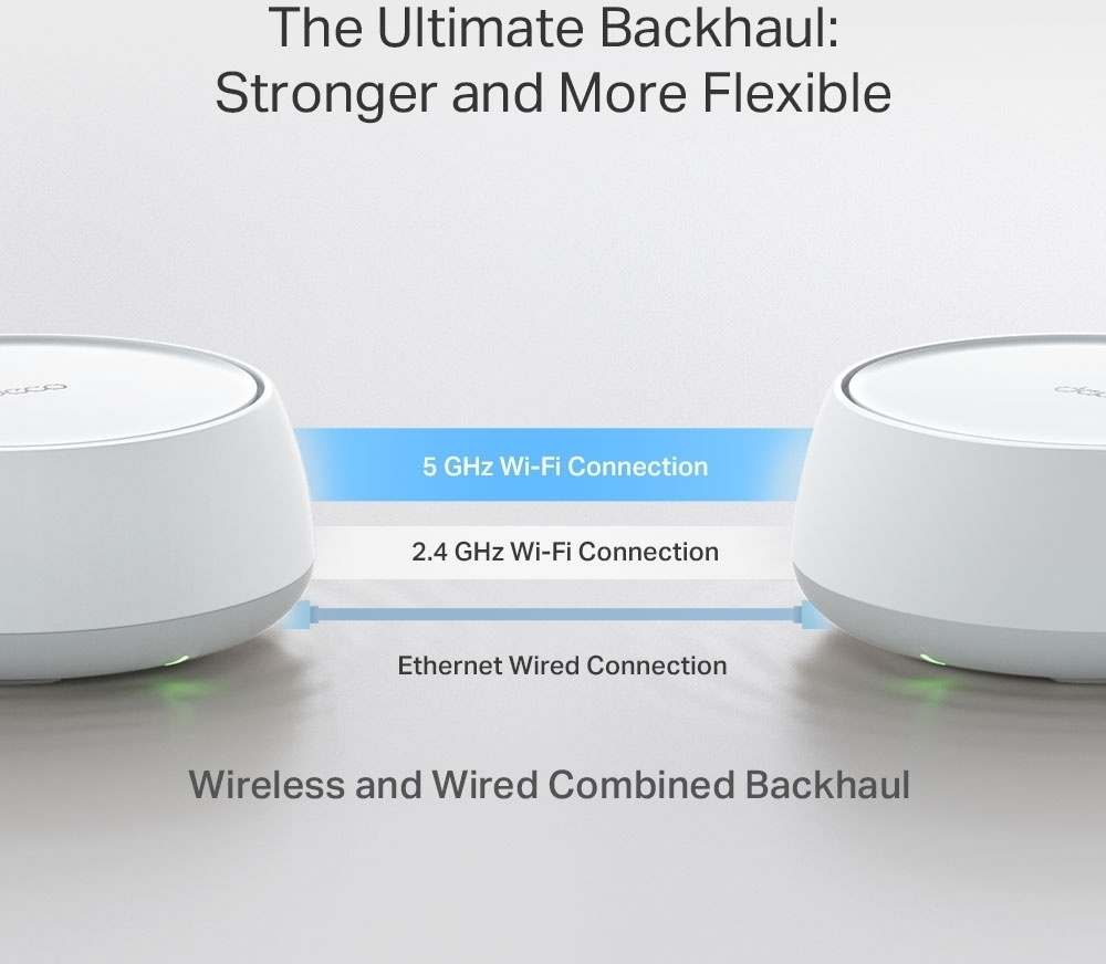 The Deco BE25 is a whole-home Wi-Fi solution that keeps your network strong regardless of your home's size and layout. Access points can be installed using a wireless or wired backbone network—or a combination of both—to ensure the best possible connection between access points. The system uses a single network name and seamlessly switches connections between access points using artificial intelligence (AI-Driven Mesh), and thanks to Multi-Link Operation (MLO), it can efficiently utilize multiple data transmission channels and different frequencies. The system supports up to 150 simultaneous users. The Deco BE25 is also compatible with WiFi 5 and WiFi 6 devices. Expanding the network is easy with TP-Link Deco routers.