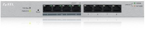 Web-managed 8-port GbE switch with 4 ports supporting the IEEE 802.3af/802.3at PoE+ standard. PoE power delivery provides power to surveillance cameras, WLAN access points, and VoIP phones via Ethernet cables up to 100 meters away. The switch's maximum PoE power output is 60 watts. The easy-to-use GS1200-8HPv2 switch provides basic features such as PoE, VLAN, QoS, and IGMP v1 / v2 and v3