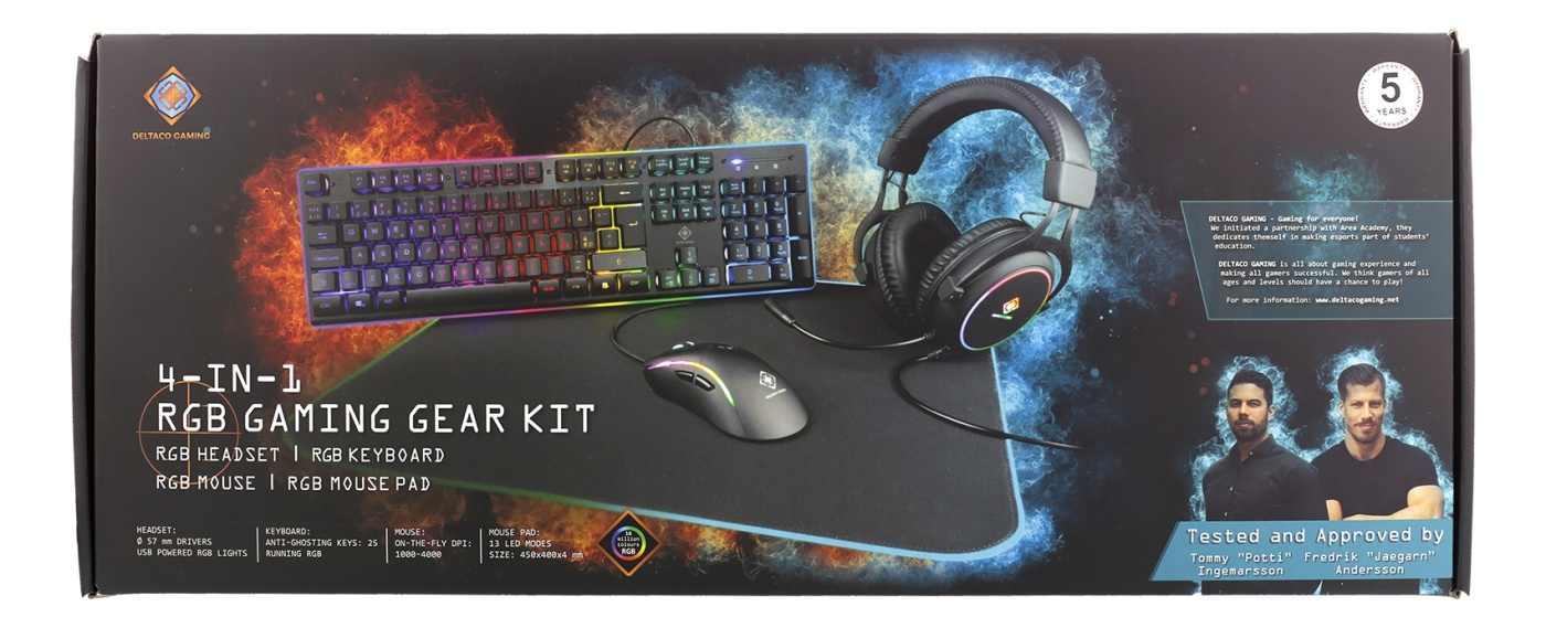 DELTACO GAMING 4-in-1 RGB Gaming Gear Kit, Headset/Keyboard/Mouse/Mousepad, black/RGB