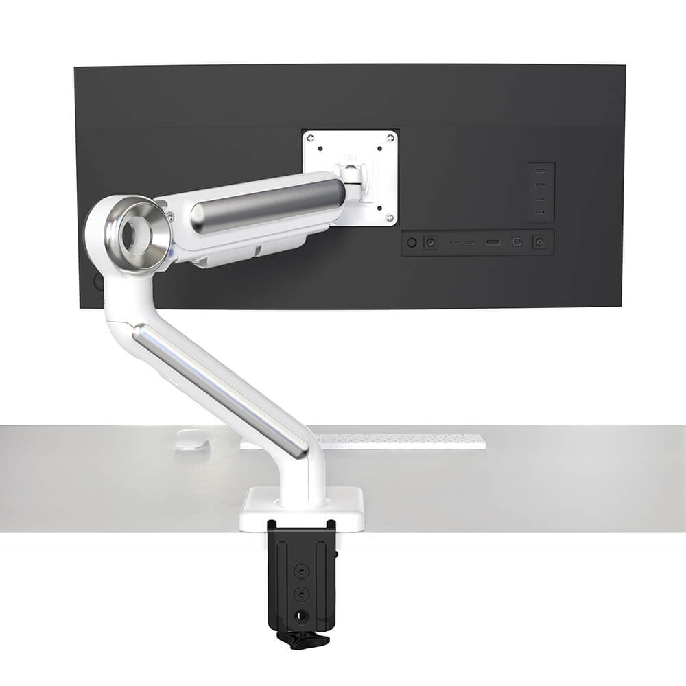 Superior weight bearing capabilities also allow the arm to hold a load of up to 12KG. The gas powered adjustment allows for the ultimate effortless articulation – 180 degrees of swivel, 360 degrees of rotation and up to 90 degrees of tilt. Installation is a breeze and can be completed in under 5 minutes. Transform your desk environment by freeing up precious space. Improve your productivity. The +90°/-85° tilt adjustment means you can angle the screen forwards or backwards (ideal for a reading view or a standing break). It will remain completely stable at any angle. And because height and position of the screen can be adjusted with one hand, you will be less likely to continue working with it set to the wrong height for your eyes and back. Designed for maximum strength and stability and engineered to last. The main frame is die-cast from reinforced high-grade aluminium. Steel ring compression swivel fittings deliver consistently reliable positioning with zero sagging. All moving parts are aggressively tested to simulate years of harsh real-life motion.