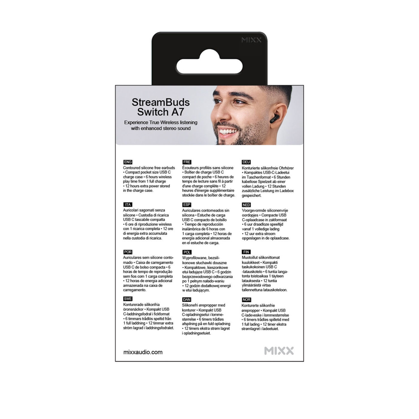 Enjoy the convenience of wireless audio with the Switch A7 In-Ear TWS earbuds from MIXX. These silicone-free true wireless earbuds are designed for those who prefer a comfortable fit without silicone tips, making them ideal for users with sensitive ears. The contoured design ensures they sit securely and comfortably in your ears.