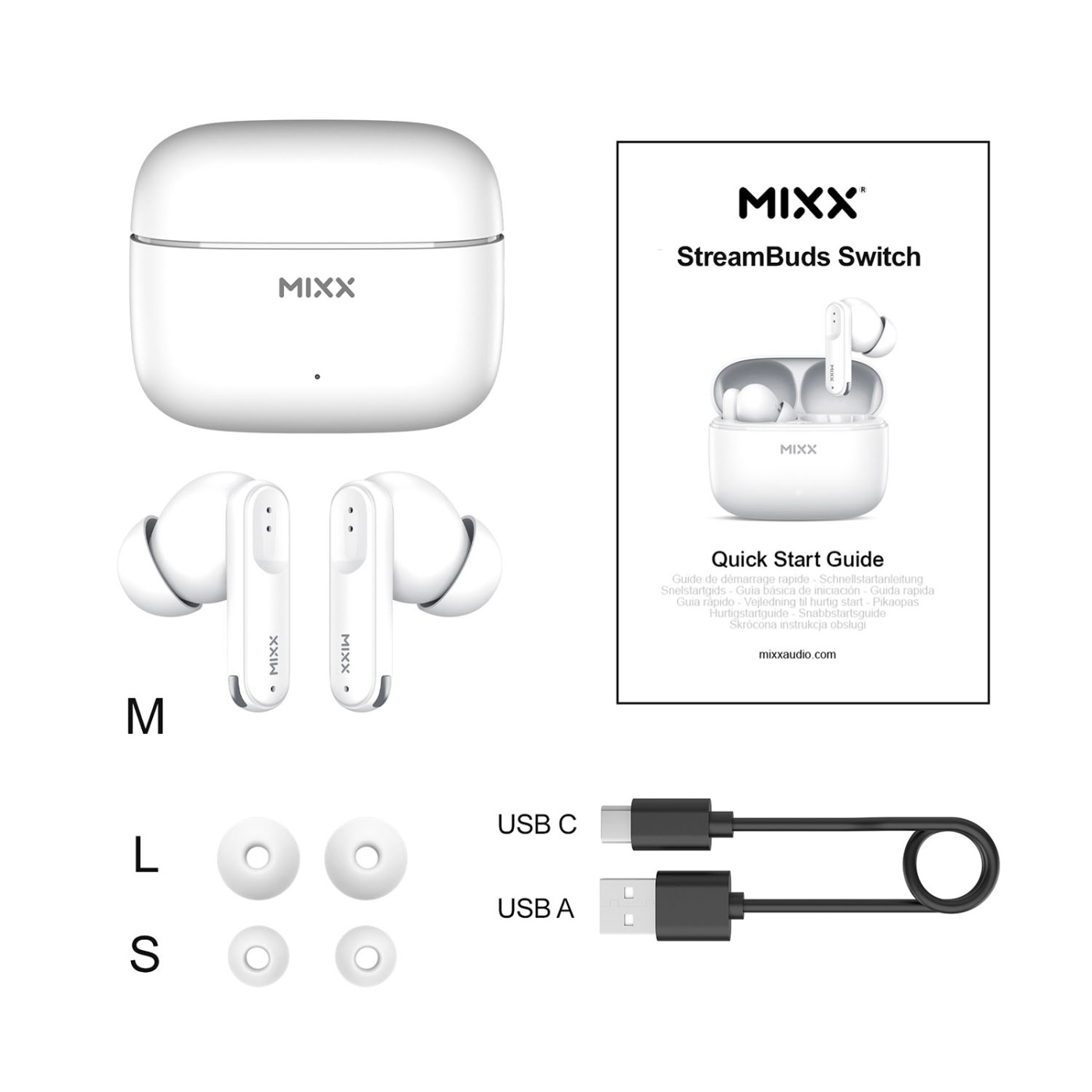 Experience the perfect blend of comfort and convenience with the MIXX StreamBuds Switch S7 True Wireless Earbuds. Designed for all-day wear, these earbuds feature soft silicone ear cushions available in three sizes (S, M, L) to ensure a secure and personalized fit. Enjoy up to 6 hours of playtime on a single charge, with an additional 12 hours provided by the compact USB-C charging case, totaling 18 hours of listening pleasure.