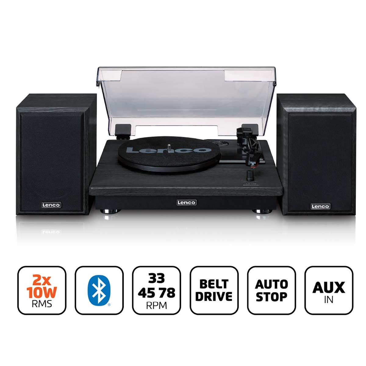 Supporting 33, 45 and 78 RPM, the LS-100BK can play virtually all record formats. Its belt-drive system reduces unwanted vibrations, while the auto-stop function helps extend the life of both vinyl and stylus.