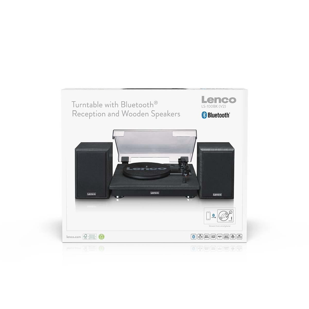In addition to vinyl, the LS-100BK supports Bluetooth® 5.3 streaming, allowing users to play music wirelessly from smartphones or tablets. The AUX input offers further compatibility with external audio sources, ensuring broad usability for today's consumers.