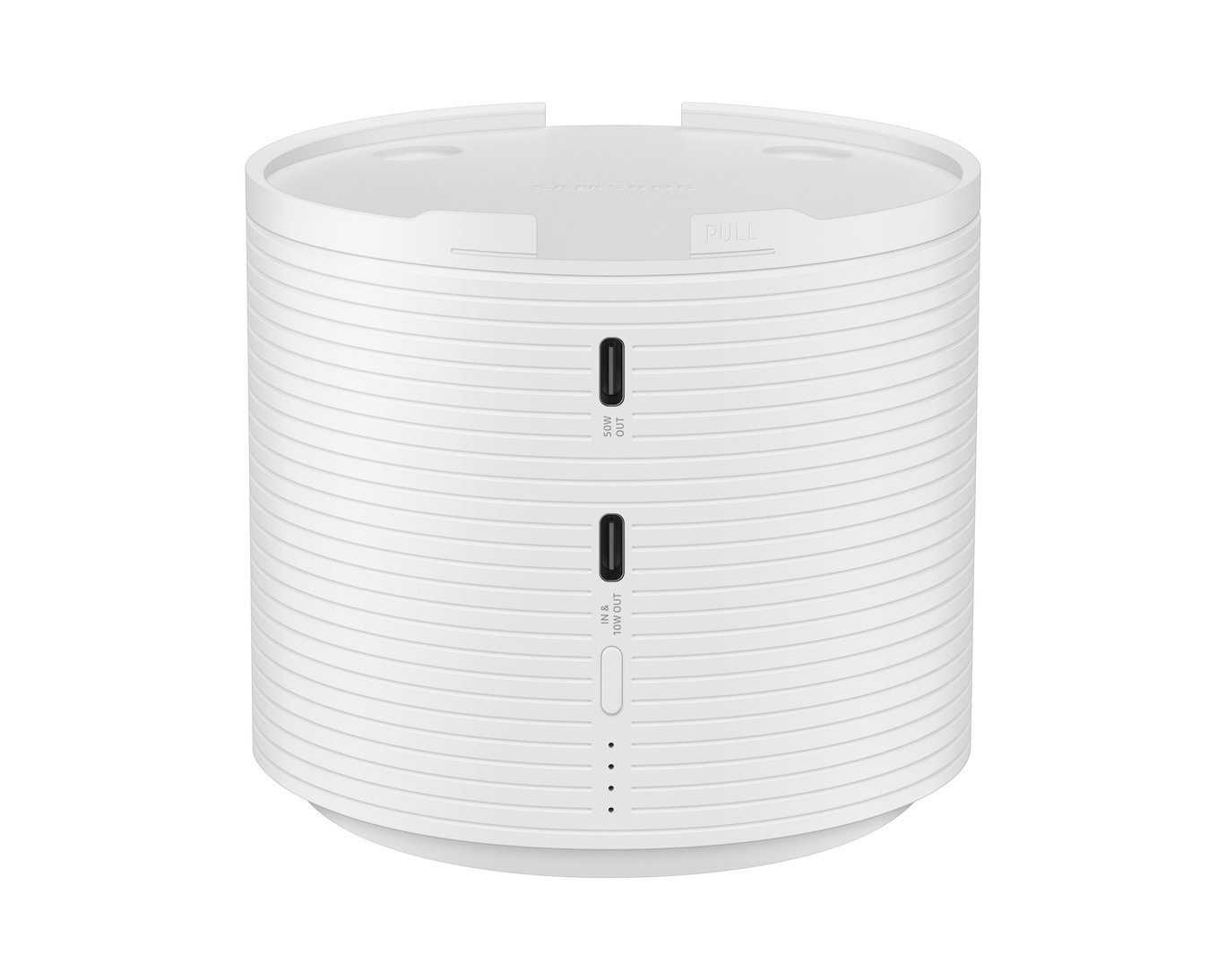 Samsung The Freestyle Battery Base provides your projector with runtime without mains power. The Battery Base also supports mobile phone charging. A USB cable is included to connect the projector to the battery base. The large 32,000 mAh capacity provides approximately three hours of additional runtime for the projector.