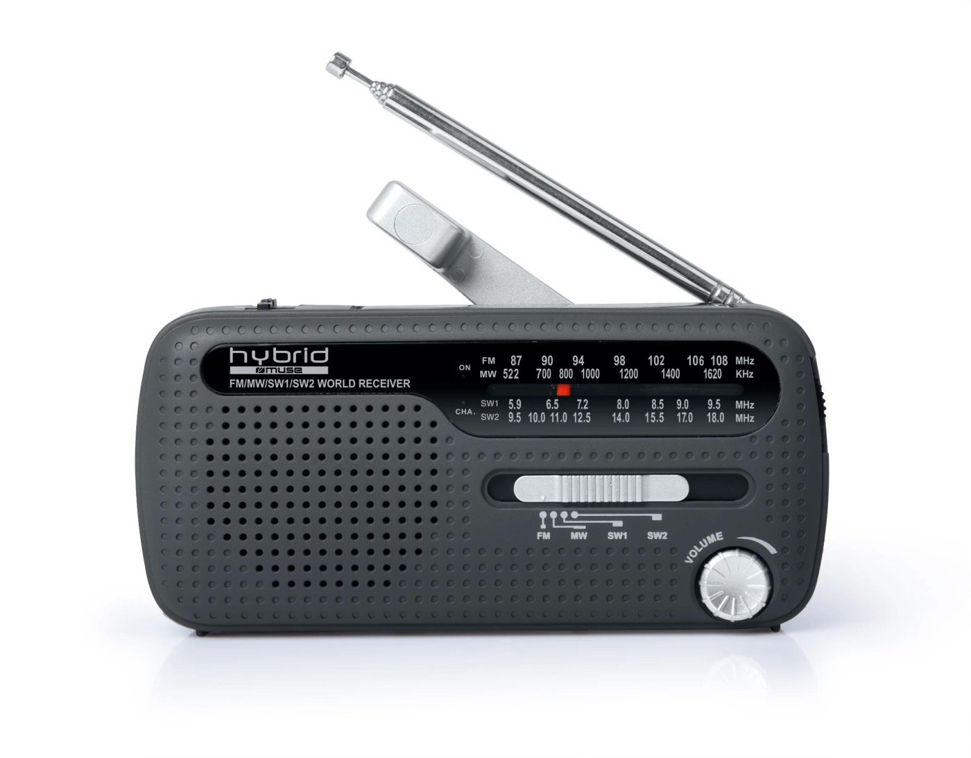 The Muse MH-07 DS is your best friend in times of trouble. Listen to music, even when you have no electricity. With the hand crank or through solar charge, you can charge the internal battery. You can also use the flash light for help, or let the Siren go of.