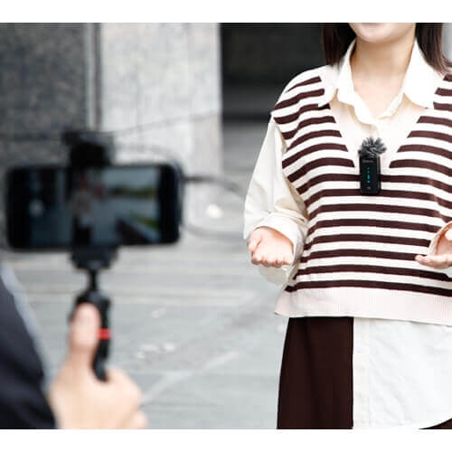 Med en lättläst OLED-display på sändare och mottagare kan användare justera signalöverföringen exakt. Och sändaren är också designad med en inbyggd rundstrålande mikrofon, så att användare kan fästa sändaren på kragen för att fånga upp ljud, samtidigt som de också kan koppla in en myggmikrofon till sändarens MIC IN-uttag för ljudupptagning. Dessutom är detta mikrofonsystem utrustat med både 3,5 mm TRS-TRS ljudkabel och 3,5 mm TRS-TRRS ljudkabel. Så det kan fungera bra med din DSLR eller spegellösa kamera, smartphone och dator etc.