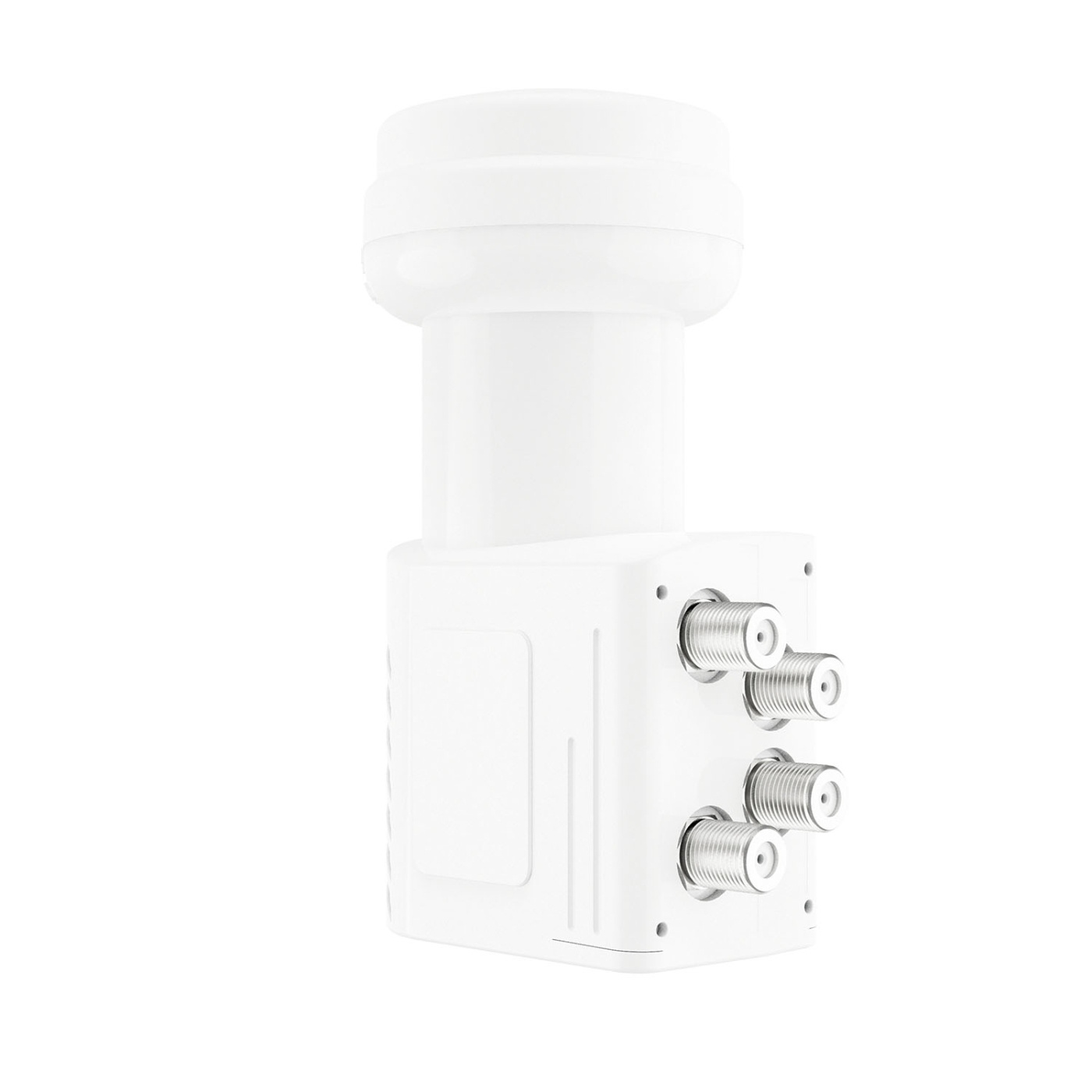 The Universal LNB Quattro is designed to provide excellent performance with a low noise factor of just 0.3 dB, ensuring clear signal reception. Its robust weatherproof housing offers protection against wind and weather, maintaining consistent transmission quality. With four connections, this LNB allows for multiple digital receivers to be connected when used with an external multi-switch. The high-quality components used in its construction contribute to its particularly low noise levels, making it a reliable choice for enhancing your satellite reception setup.