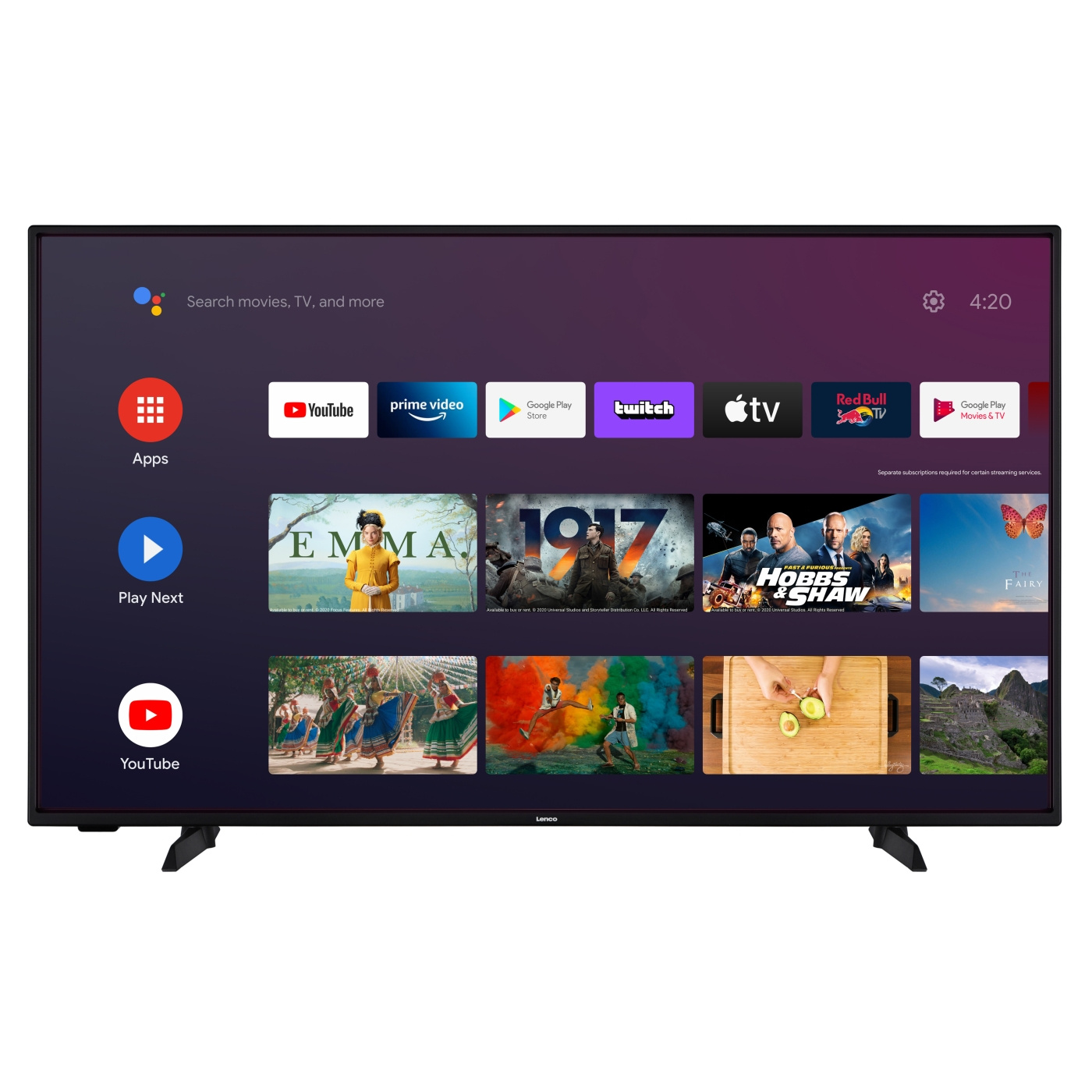 • Android Smart LED TV with apps such as Netflix, Amazon Prime, Disney+, Apple TV, Google Play Store and YouTube already installed