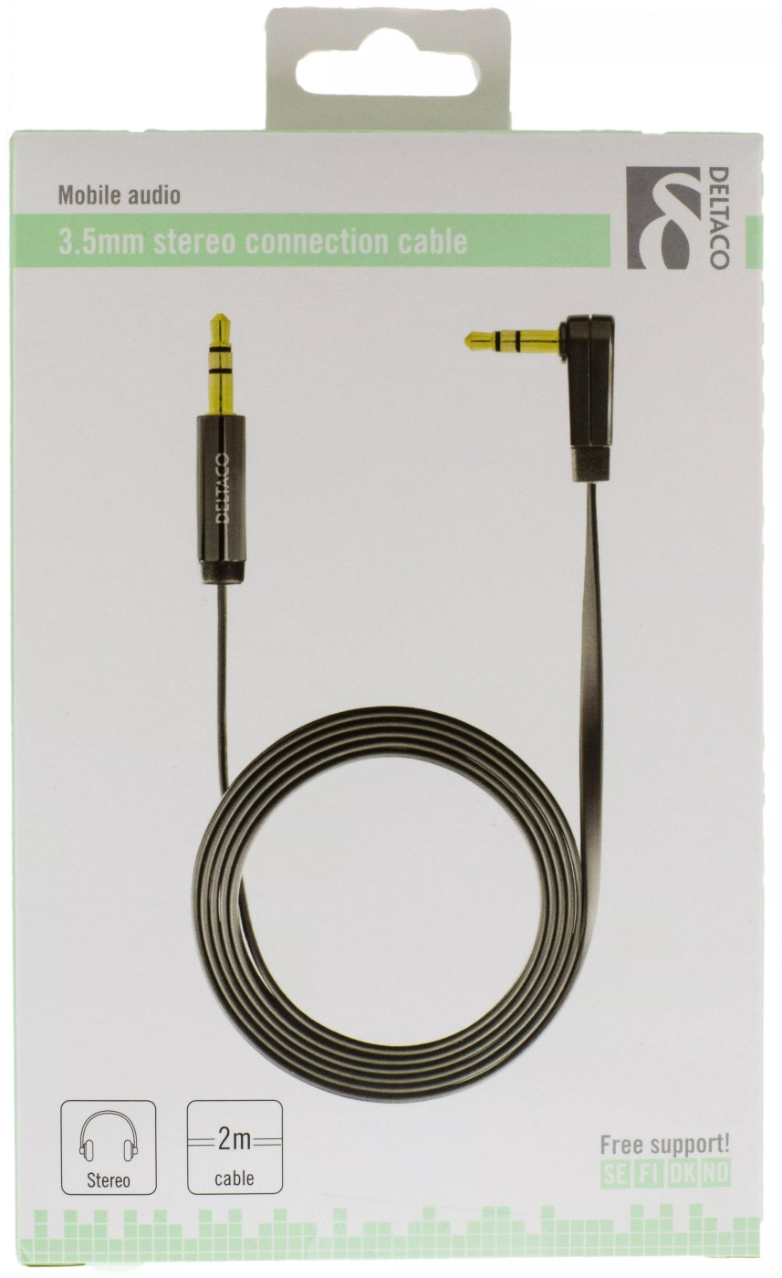 " title="DELTACO audio cable, angled 3.5mm male - 3.5mm male, 2m, black
