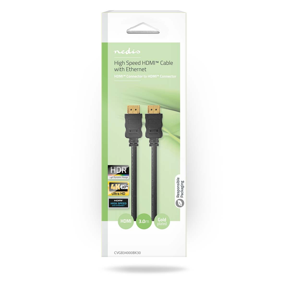 Nedis High Speed HDMI™ Cable with Ethernet | HDMI™ Connector | HDMI™ Connector | 4K@30Hz | ARC | 10.2 Gbps | 3.00 m | Round | PVC | Black | Box