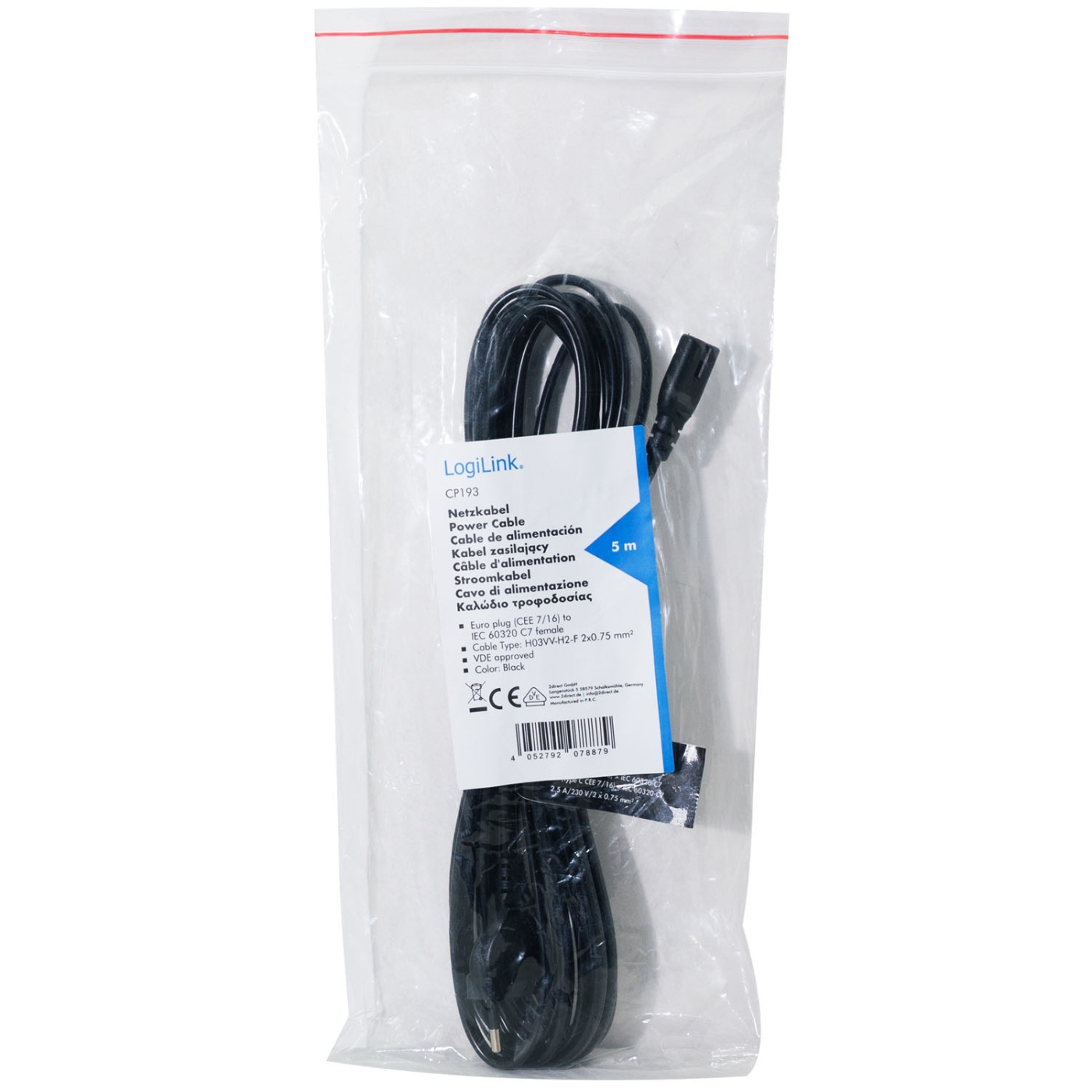 LogiLink Strömkabel, CEE 7/16 till IEC C7, svart, 5 m