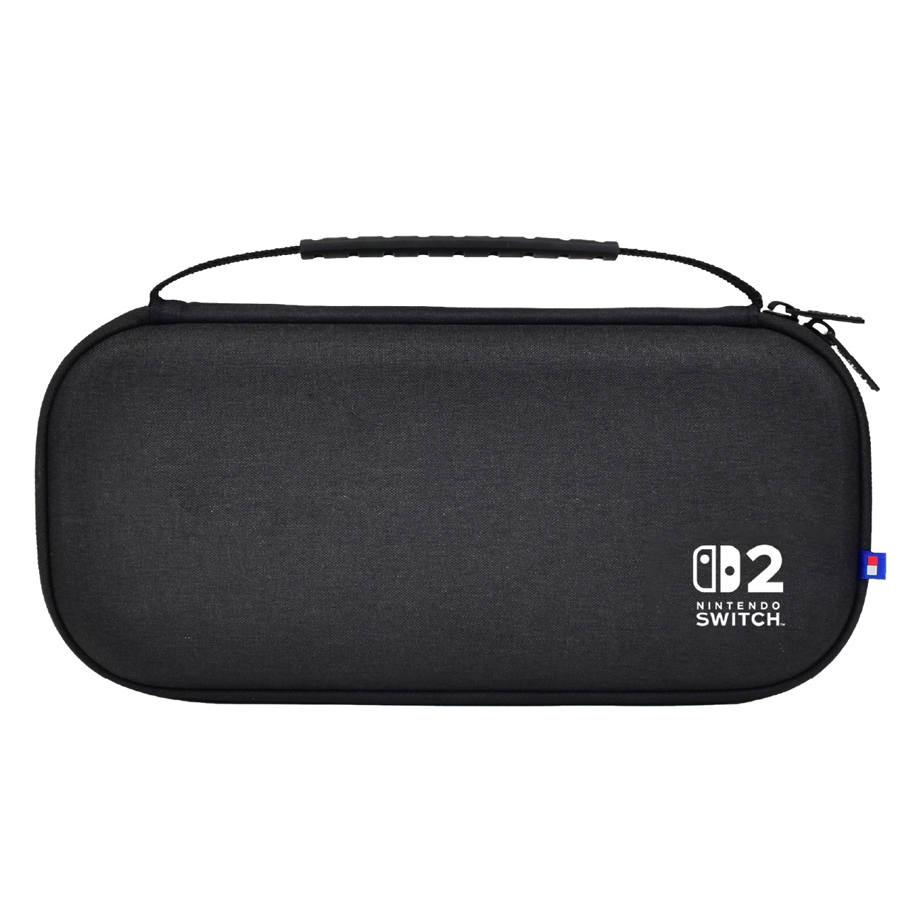 Game on the go and in style with the HORI Slim Tough Pouch (Black) for Nintendo Switch&trade 2. This slim, lightweight pouch places a form-fit protection that is tough and durable. Holds up to 10 game cards and the plush interior keeps your system safe from scratches. Features a convenient carry handle for easy transport. Officially licensed by Nintendo®.