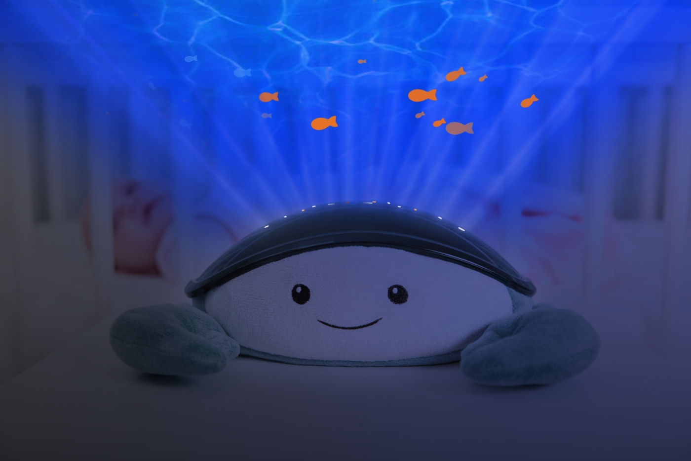 Zazu Cody transforms a child's room into a magical underwater world where waves move and fish swim around the ceiling. The crab also combines the reflection with a soothing sea noise that will lull your little one to sleep. The three-stage programme gradually reduces the effects and automatically switches off after 30 minutes. At night, the cry-reactive Zazu Cody soothes your baby with the sounds of the sea, a heartbeat or a lullaby.