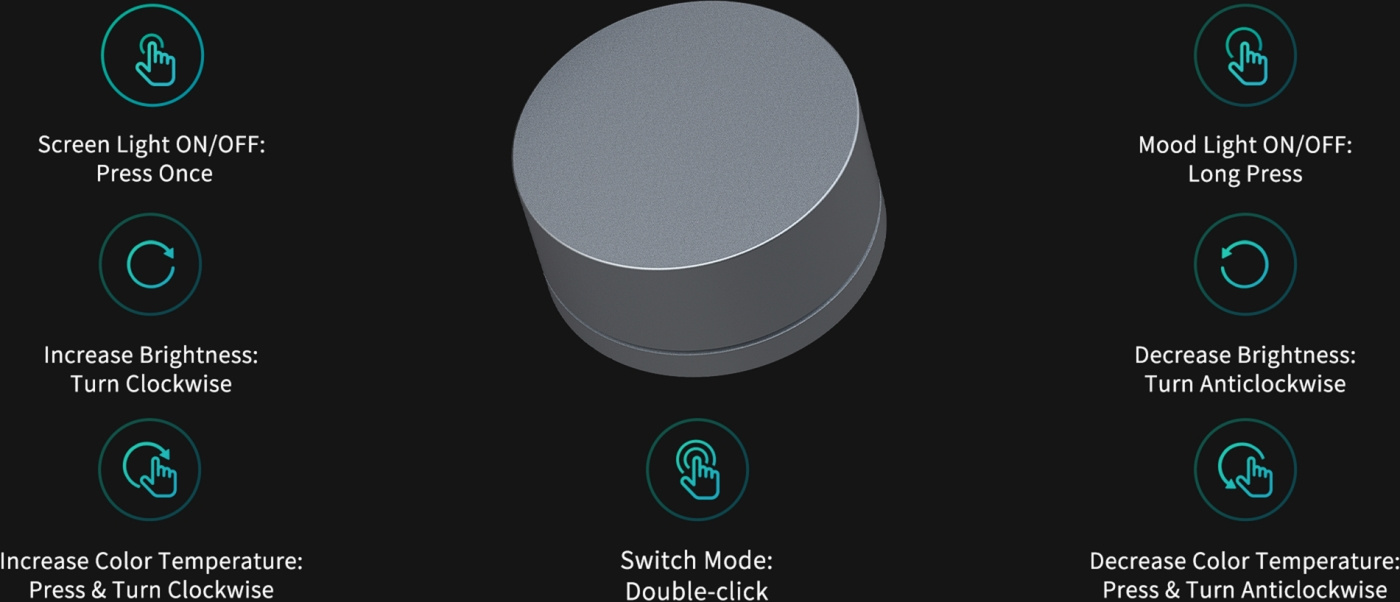 Ljusstaven levereras med en mångsidig vridknapp som kan användas för att tända eller släcka ljuset och justera lampans temperatur och ljusstyrka. Knappen kan också användas för att välja stämningsläge för lampan.