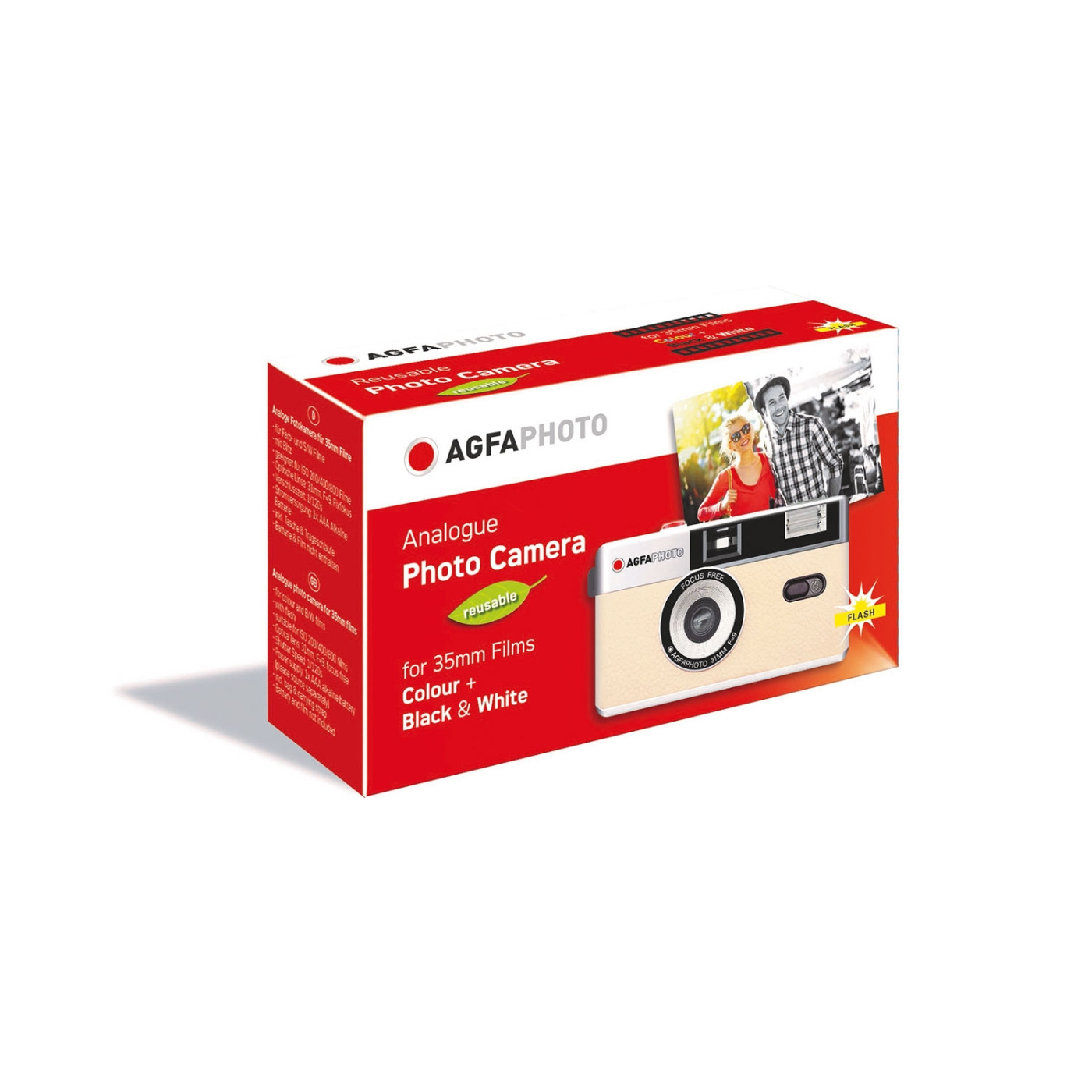 A 35mm film camera from AGFAPHOTO combines retro design with modern functionality.