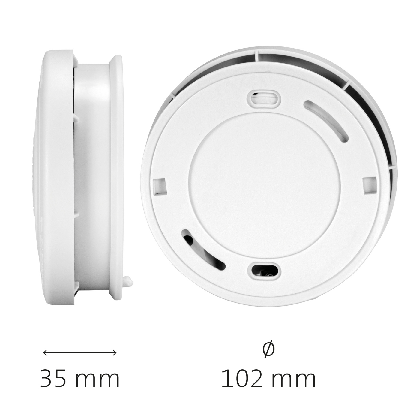 This compact design smoke detector has a lithium battery with a 10-year lifespan built in, next to this the sensor also has a long life of 10 years. Imagine the advantages: you will never have to buy new batteries for the smoke detector, saving you money, and you will never have to take a ladder to change them. This long life also brings an added safety and peace of mind, because there is no risk of an empty battery during an emergency situation.